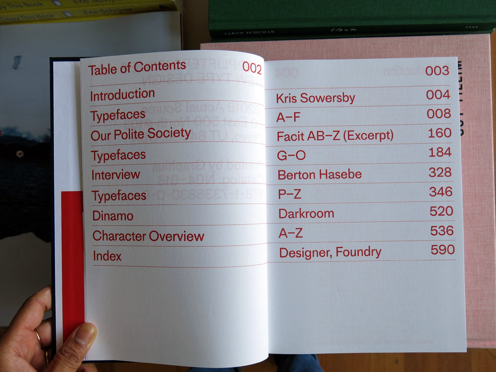 Issue 8, New Type Design, features: 100 typefaces by over 60 designers. Facit AB–Z (Excerpt) by Our Polite Society, an interview with Berton Hasebe by Harry Gassel, "Tools" by Dinamo and an intro written by Kris Sowersby.
