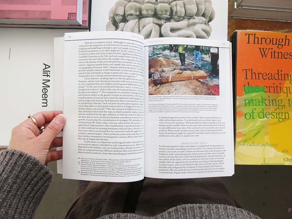 The editorial team is composed of staff and researchers based at the Centre for Research Architecture (CRA), whose collective insights and interests guide each thematic book in the series. Riccardo Badano is an architect and researcher. He is a tutor at the Royal College of Art and a PhD candidate at the CRA. Tomas Percival is an artist, researcher, and writer. He was previously a lecturer at the CRA, where he also undertook his PhD. Susan Schuppli is an artist-researcher and writer. She is professor and director of the CRA and board chair of Forensic Architecture. Aslı Uludağ, associate editor for this issue, is an artist and PhD candidate at the CRA.