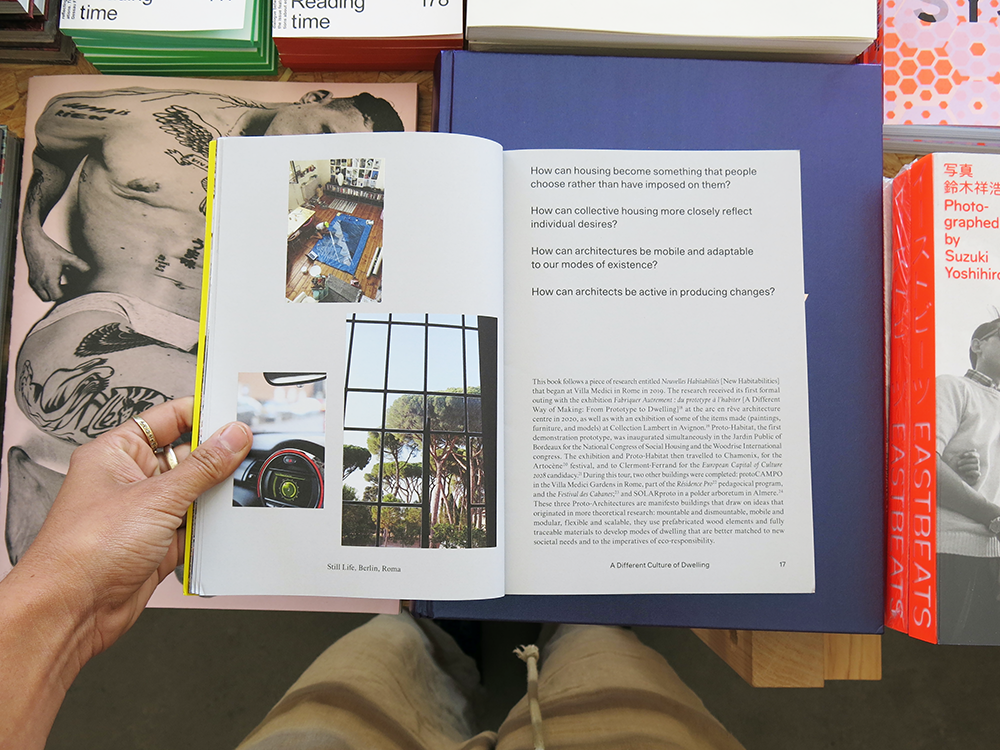 The book Proto-Habitat retraces a reflection combining interviews, visits, paintings, objects, images and architecture exploring the imagination of our ways of existing as well as their means of production. This reflection gave rise to and participated in several exhibitions: Fabricating differently: from the prototype to inhabiting it at the Arc en Rêve architecture center, Tiny Lives at the Collection. Lambert and Home Made at CID Grand Hornu. The Proto-Habitat was installed in Bordeaux, in Chamonix for the Artocène festival and Clermont-Ferrand as part of the candidacy for European Capital of Culture 2028. In the meantime two other demonstrator prototypes were built, assembled then dismantled: the protoCAMPO – an events venue for 300 people in the Gardens of the Villa Medici in Rome – and the SOLARproto – an autonomous water and electricity exhibition space on a polder in the Netherlands.