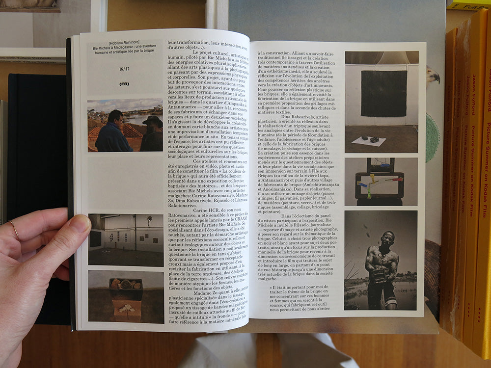 Besides images and stills, five writers deliver a contribution in their own working field related to the project: Hobisoa Raininoro (Art assistent and former director of CRAAM (Centre de Ressources des Arts Actuels de Madagascar, MG), Rafolo Andrianaivoarivony (Professor History University of Antanarivo, MG), Petra Van Brabandt (Doctor philosophy Sint Lucas Antwerp, B), Gwyn Campbell (Professor History Mc Gill University, CA) and Nanne op ‘t Ende (writer, NL).
