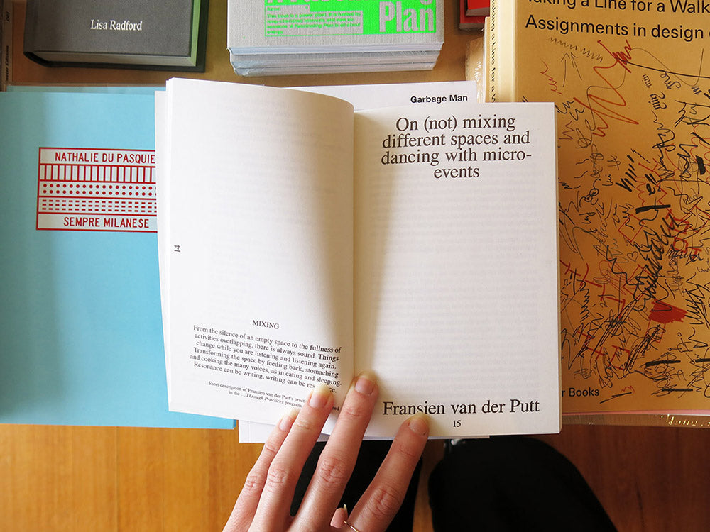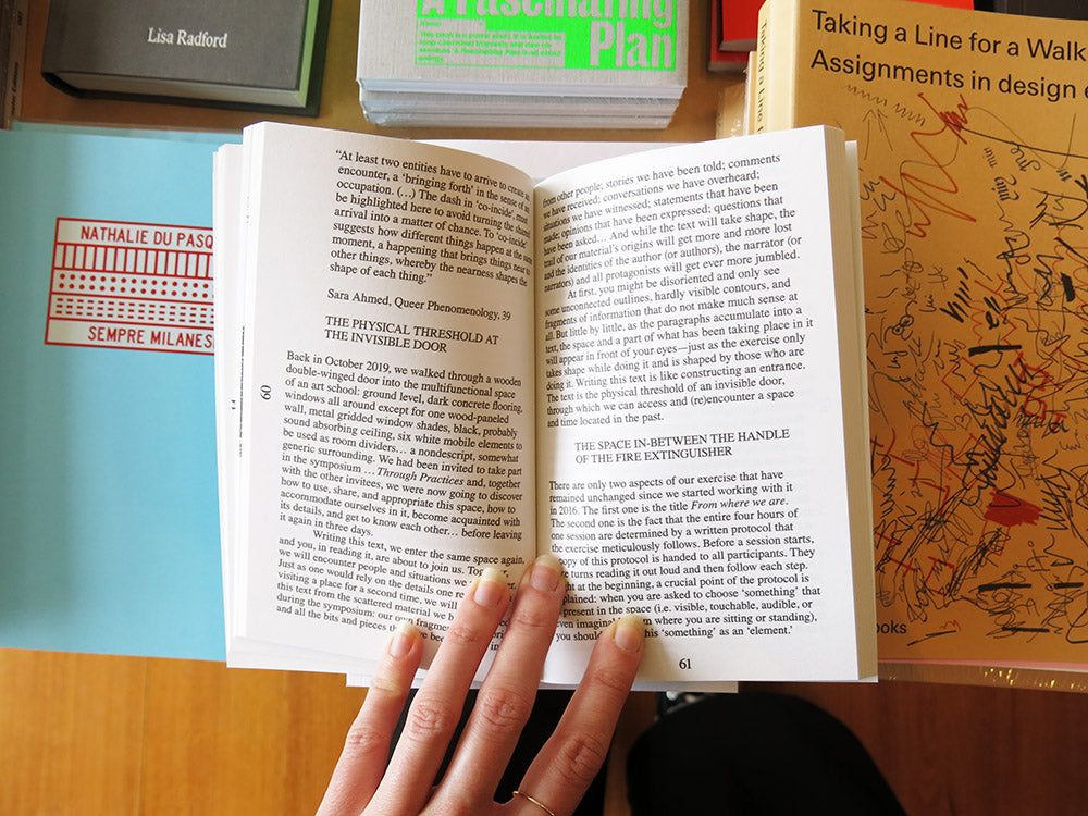 … Through Practices is written by artist researchers who have been involved in a three-day public symposium with the same title, explo­ring ecologies of attention, awareness, senses of participation, and agen­cies of practice. It presents resonances and sedimentations of indi­vidual, shared, and collective practices, mirroring different forms of participating and responding—diverse in/capacities, im/possi­bilities, and dis/interests as they appear in and through experience.