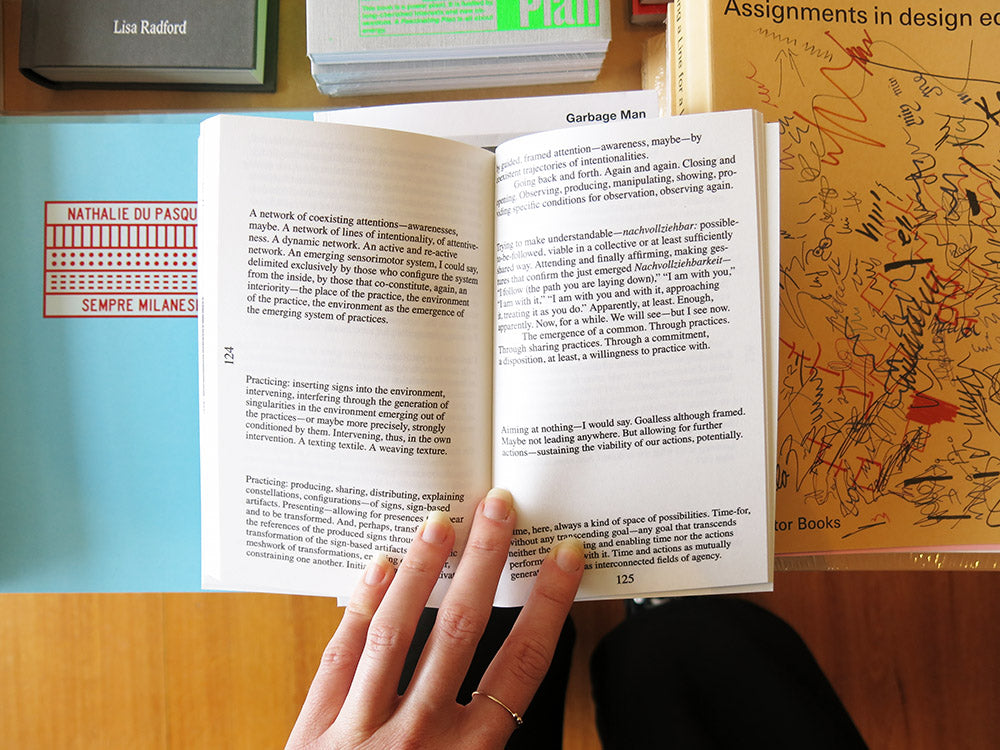 The books included in the series Choreography as Conditioning are rooted in a cycle of work sessions entitled CASC at KASK, in which students work together with invited guests. They explore the notions of choreography, understood as ways of organising subjects in their surroundings, and conditioning in both art-making and society-making. Where, how, and by whom are things organised and what kind of landscapes of experience are made (im)possible by the practices we enact and encounter?