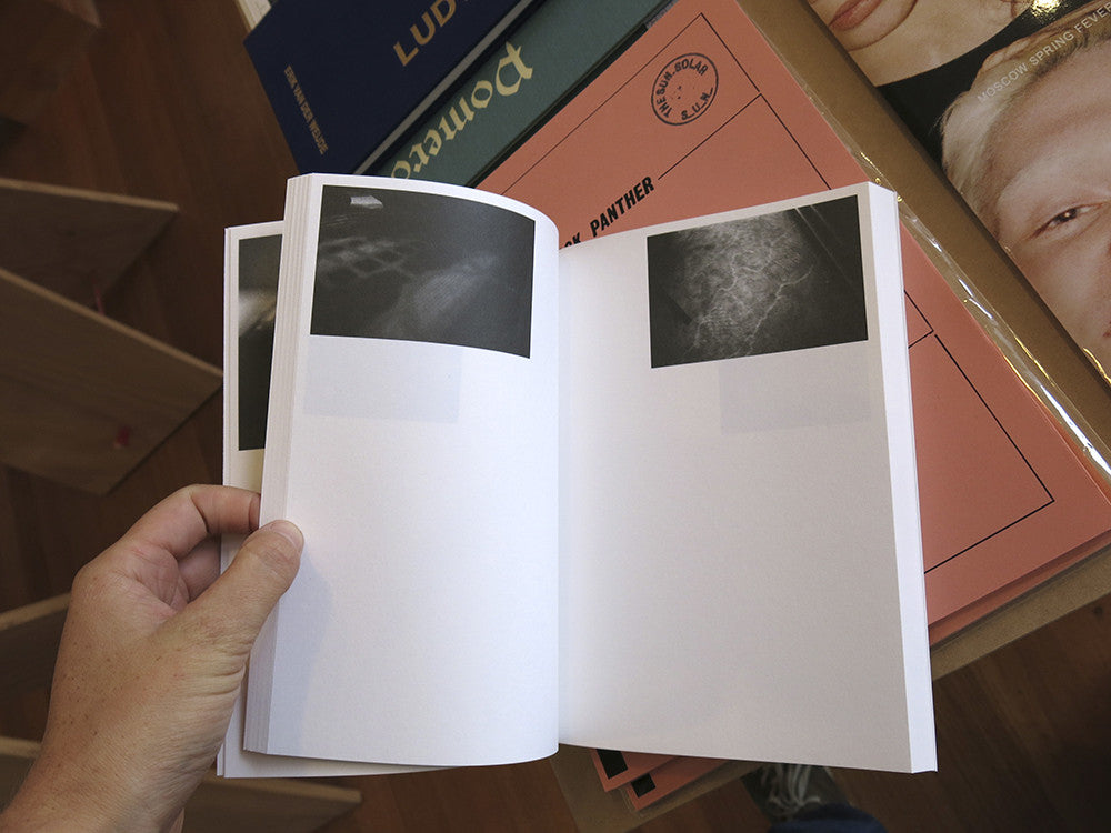 Dominique Somers’ work '00A' consists of a compilation of found images. The title of the series refers to the starting-point markings, printed between the sprocket holes on the leader of a 35-mm photographic film. Somers has been collecting the first, automatic exposures made on this 00A frame of the negative strip for years. They are the result of a photographic practice that in today’s digital age has almost become a form of archaeology: when positioning a roll of analogue film in the camera, one has to release the shutter a few times and wind a couple of frames forward to reach the starting position (1A) of the unexposed part of the spooled film. It is precisely these throwaway shots that Somers has appropriated. Thanks to Art Paper Editions (Ghent).