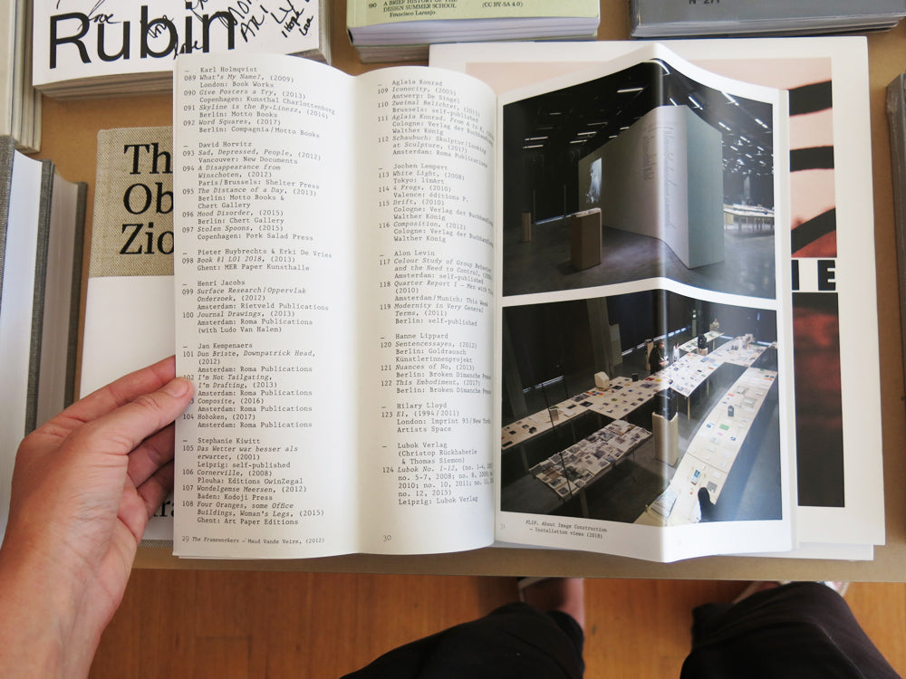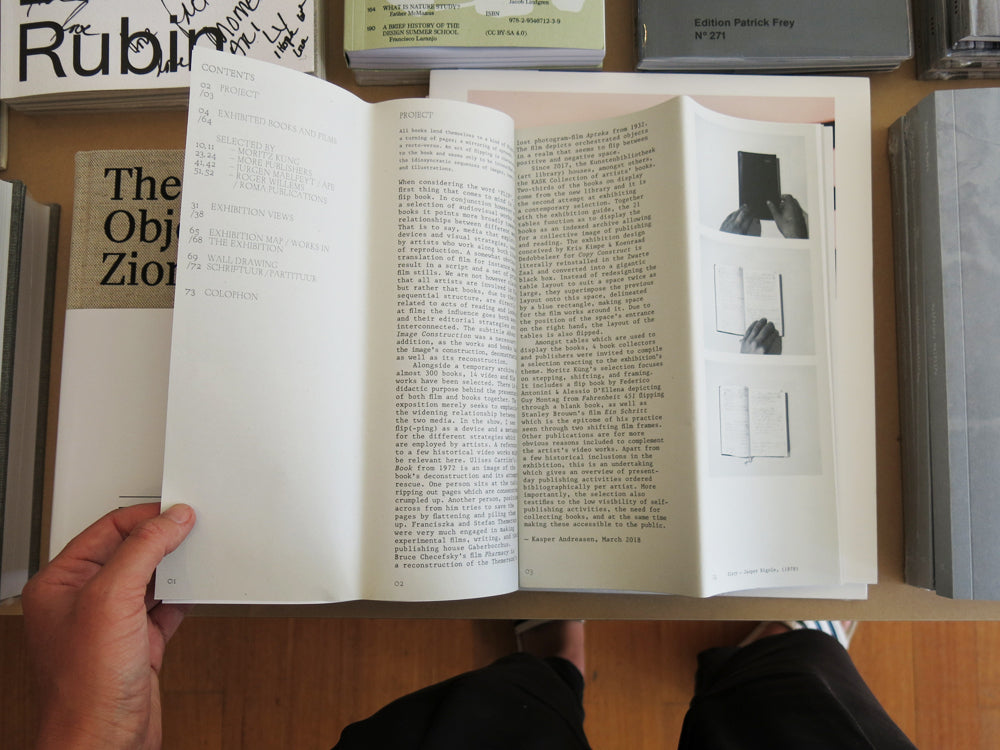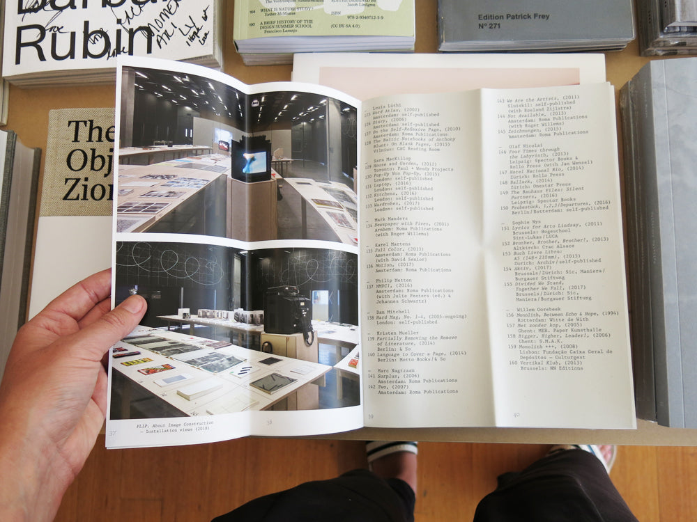'FLIP — About Image Construction' is the catalogue published on the occasion of the exhibition, held at KASK, Ghent in 2018, curated by Kasper Andreasen. The exhibition focused on displaying a temporary archive of artists’ books parallel to more than a dozen filmic works. Alongside the film and video works in the exhibition, artists’ books from the KASK collection (Kunstenbibliotheek) were shown as well as selections by 4 book collectors and publishers. The term "FLIP" associatively refers to the performative gesture of leafing through a book, but also to notions of image sequences, reversal (printing), the flipbook, as well as the use of text and images in both books and video works. Thanks to Art Paper Editions (Ghent).