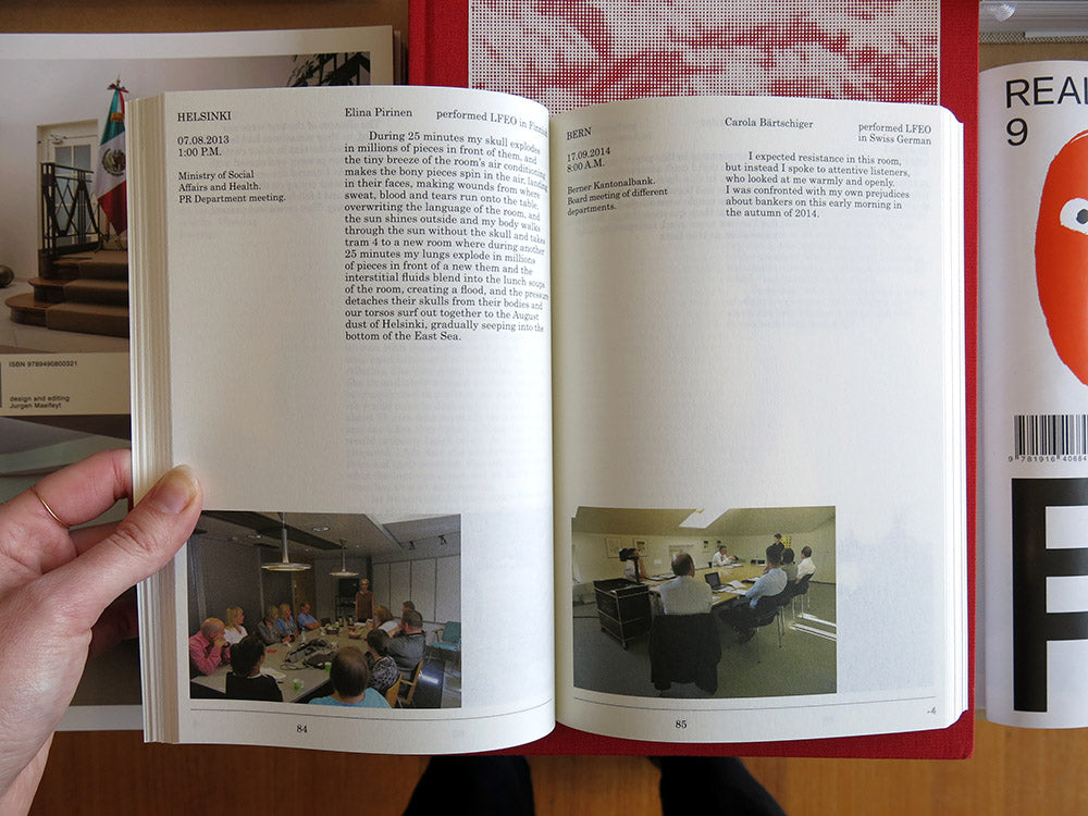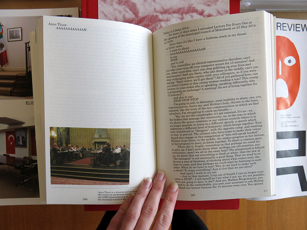 During seven years, 16 performers spread Lecture For Every One throughout Europe. They intervened in more than 300 different gatherings, from a corporate sales meeting to a brass-band rehearsal and a municipal council. As uninvited guests, they addressed every one with exactly the same text. Until now, the project has remained largely invisible to the wider public. This book now sheds light on the information and expertise Lecture For Every One has generated—feedback, stories and memories from a range of perspectives. It reflects on how places where people gather can become political instances, on the (im)possibility of addressing every one, and on the value of fiction in our daily lives.