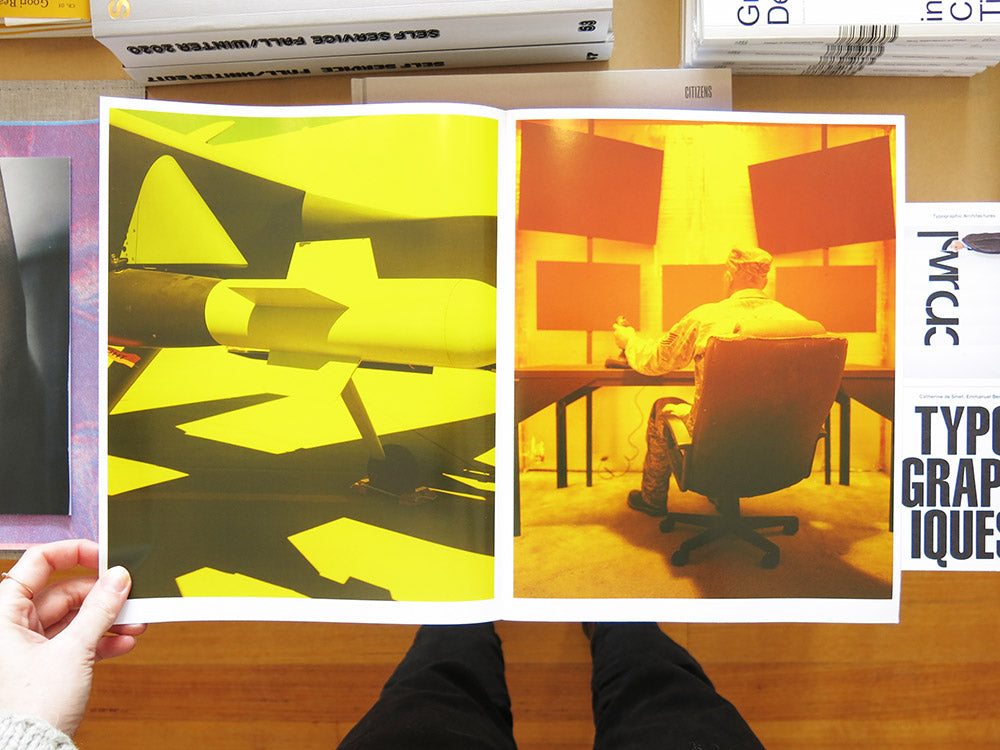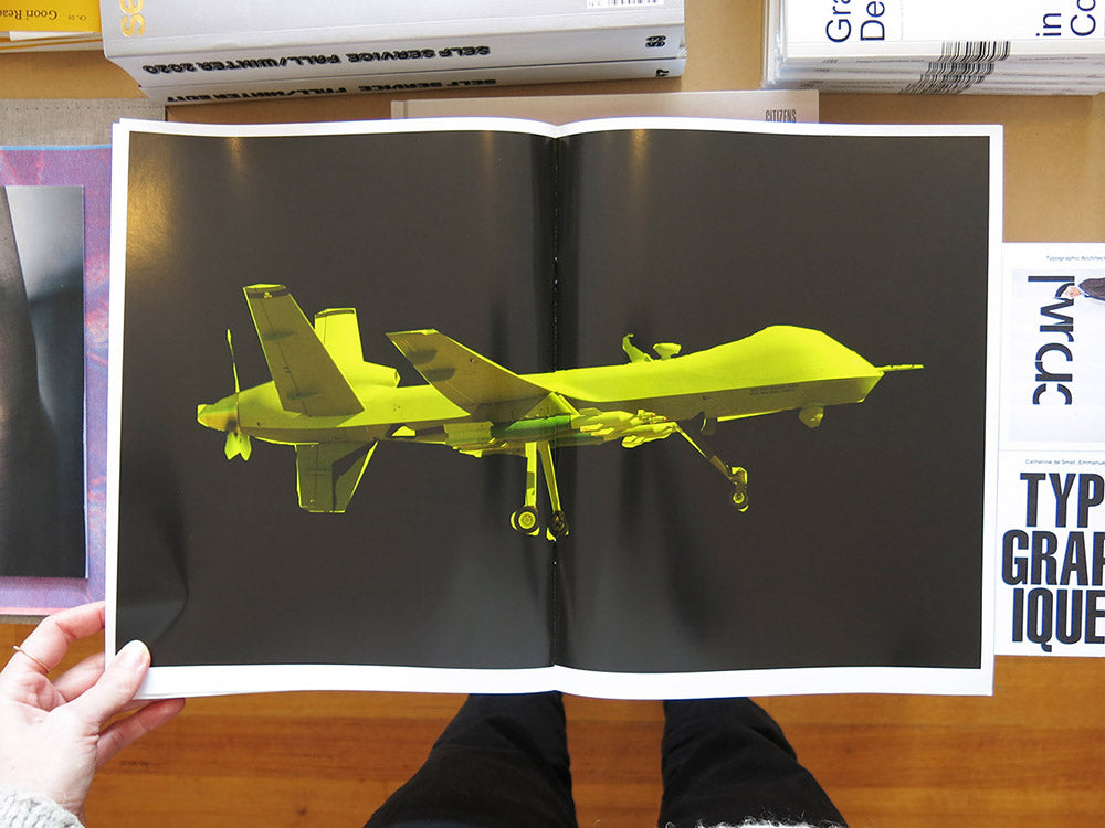 'At night I cut across the sandy terrain. With two hands on the steering wheel, the car shoots towards the inter-state to Indian Springs, where I pilot military drones. Grainy pixels spread all over the screen. Day and dreams get blurred, and I ask myself again, as I’ve done for always, whether I’m living in a dream or in reality. (…) Coffee machine, everyday gestures, settling into a leather armchair: vertical joystick, multiple screens console. The game starts, virtual reality—the grid on the screens grows larger and I venture down into the midst of the colored points, headed towards the convulsing horizon in the distance. Soon enough, I’m surrounded only by gridlines, I’m entirely inside it. I feel good. Every day I experience the same surprise at the first contact with the imperceptible of virtual matter. From my fixed position I’m invisible, unassailable, I dominate in close-up a vast territory. (…)'