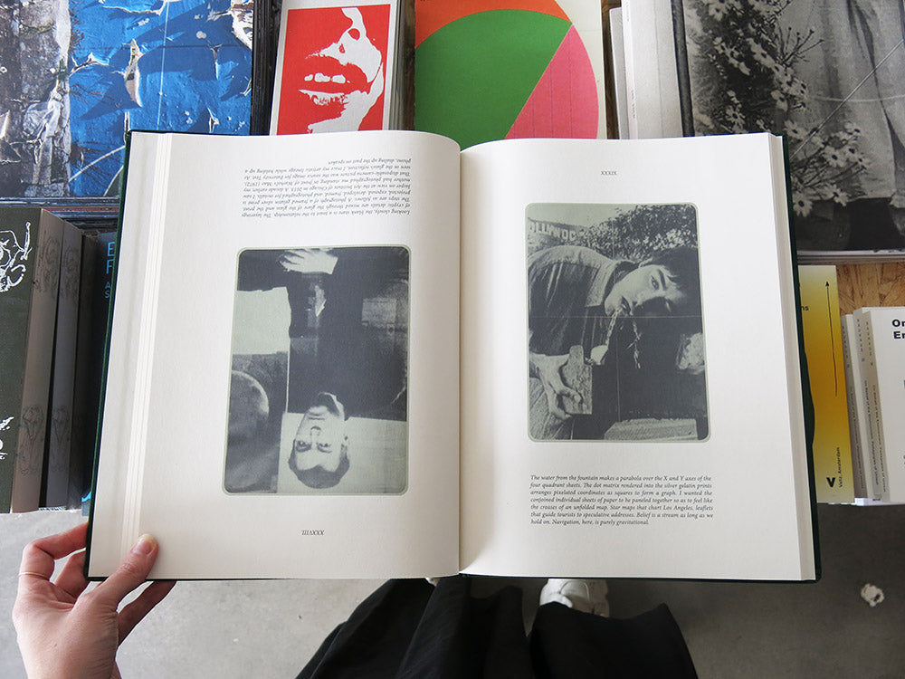 Loosely inspired by the structure of a deck of playing cards, Double Player weaves together five distinct bodies of work – Bachelor Suite (2024), Heatwave Suite (2024), Watering Hole (2023), Three Works (2021), and Paternity Test (2021) – shuffled into a whole that reveals surprising connections and throughlines. The book strikingly opens with the word GAYLORD – in another context, the name of a legendary Los Angeles apartment complex, but here, a directive that sets the tone and calls the viewer to engage immediately with the ensuing images.