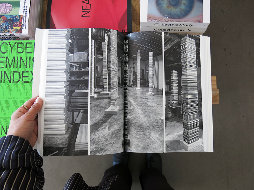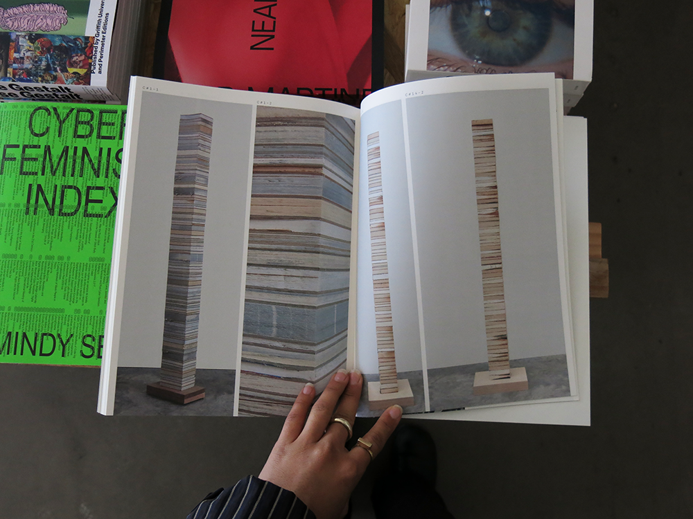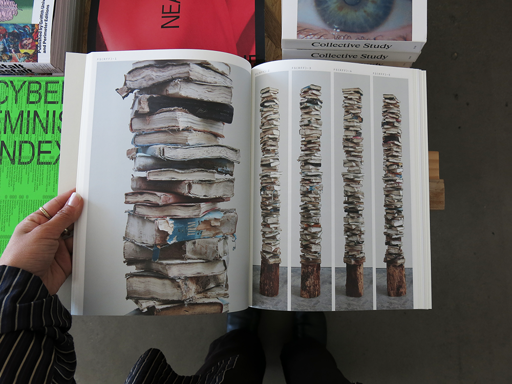 American artist Jared Bark began putting up stacks of books in the fields and woods on his farm in 2012. All he had was an image in his mind’s eye of a column of books standing at the edge of a field sur-rounded by trees. After working on the outdoor stacks, Jared Bark brought the project indoors to his studio, making all sorts of different stacks: colourful ones, burned ones, effaced one… More recently, Bark has been constructing vertical stacks of books that are then run through a sawmill to become acant, a term for a log that has been milled on all four sides. The slender verticality of the sculptures reference both the trees from which paper is made and the ancient freestanding columns Bark experienced in Pompeii. Book of Stacks, Stacks of Books gathers for the first time in a book a comprehensive selection of the stacks Bark has been making over the past decade.