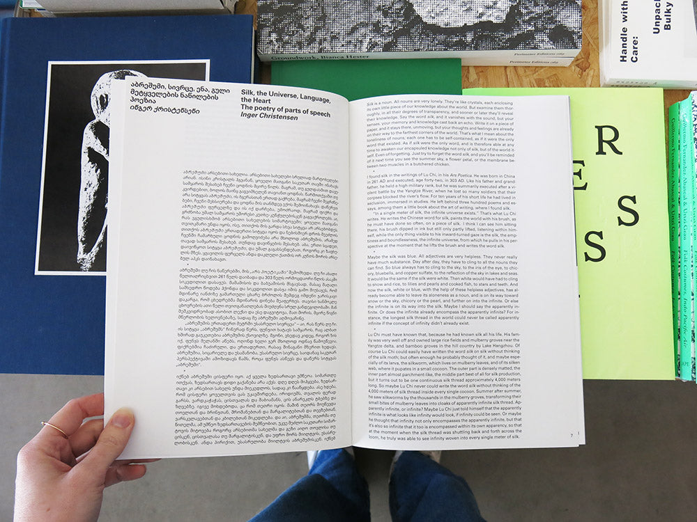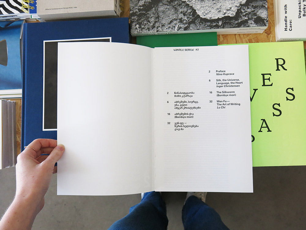 In Silk, the Universe, Language, the Heart Inger Christensen presents her Ars Poetica, referring in particular to a text by the Chinese poet, military leader and politician Lu Ji (261–303), which is an important inspiration not only for her, but also for numerous other poets of the 20th century. In the book Wen Fu, Lu Ji presents his reflections on poetry in the form of a lyrical text, demonstrating that poetry is first and foremost a medium of 'coming to be' (Stephen Olson) rather than a representation of the existing world. In this sense, Christensen’s text negotiates the meaning of silk and its production by silkworms for language beyond the metaphorical. The publication of both works, together with laboratory photographs documenting the life cycle of a silk worm contextualises this in a special way, making a statement for the open and experimental character of the new publication series SERI(a).