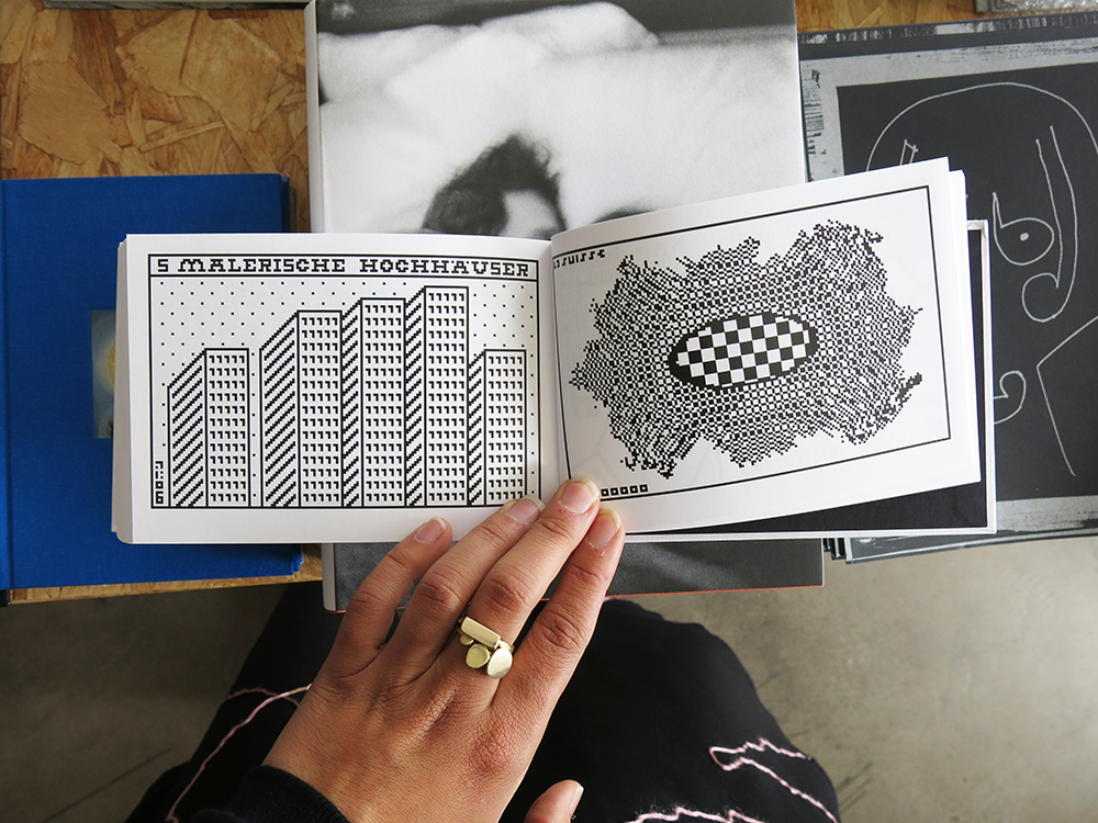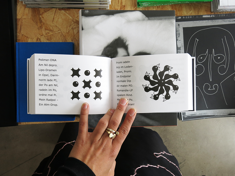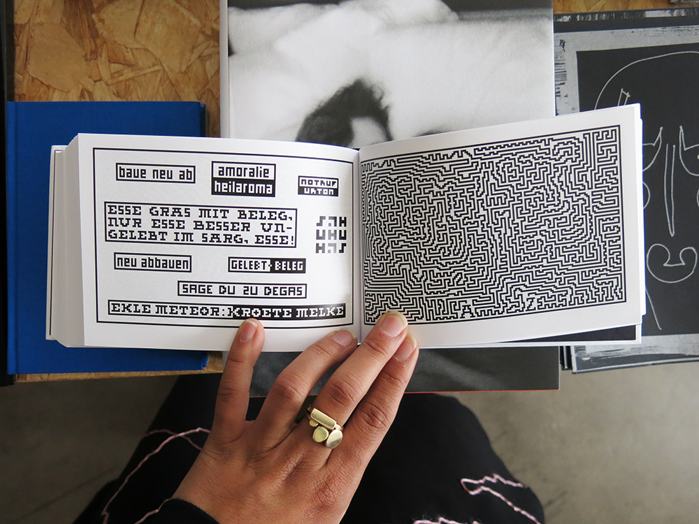 'Health, happiness and money in the New Year.' These are Anton Bruhin’s New Year wishes for 2007 in his very first zine. Ever since he was a boy, he has loved putting together little A6-size zines. His stencil-printed Plim came out in 1969, followed by more zines at April Verlag, a publishing house that Bruhin and Hannes Bossert ran jointly from 1969 to 1972. Some thirty years later, in 1998, 40 zines were printed on a Brother fax machine under the title Vierhundertfünfundfünfzig-seelendorf Editionen. And his 2014 series Scheissegedichte (Shit Verses) featured word sequences, palindromes (ekle meteor—kroete melke), typewriter art and pixel portraits alongside drawings of electrical sockets with curlicue pig’s tails and scatological couplets, e.g. for a rather free rhyming translation: