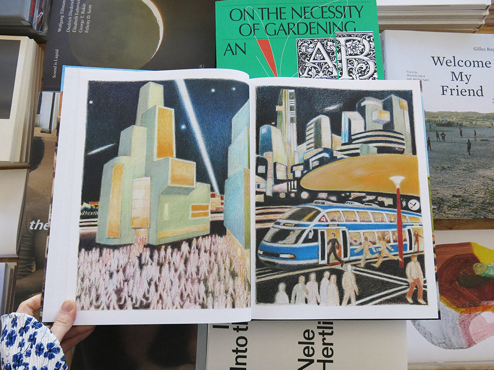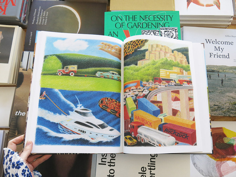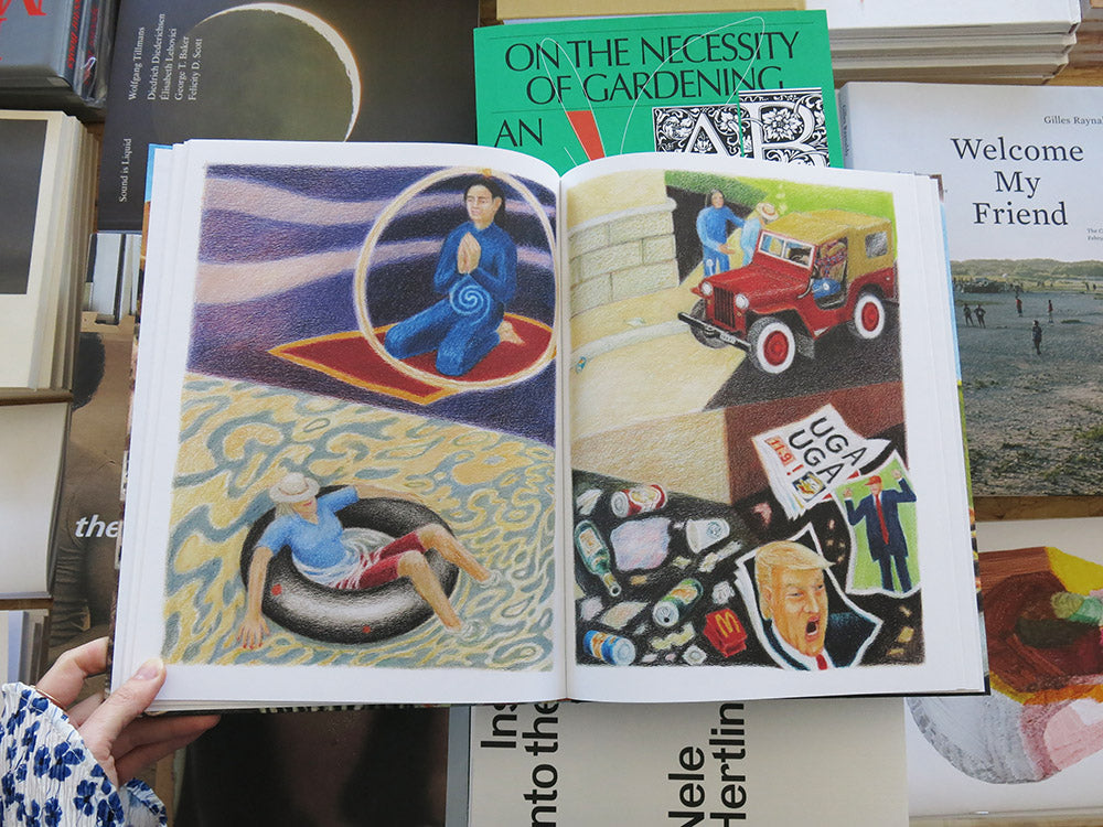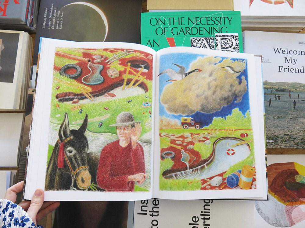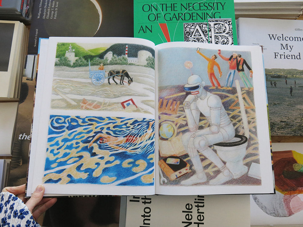 This short story combines a wide range of different genres, characters and themes into an almost bewildering patchwork, a casual and yet close-knit tapestry interwoven with religion, politics and art history, climate change and the environment. And it asks, not just parenthetically, some big questions: Is there a right way of leading the wrong life? What’s the difference between culture and propaganda, art and sports? These earnest, even deadly serious matters are contrasted with Emanuel Halpern’s whimsical and quaintly familiar-looking visual idiom in the subsequent graphic novel as well, with its bright children’s-book colours and soft outlines. One could almost convince oneself that the world isn’t doing all that badly after all. Almost. A reality teetering on the very brink of disaster can only be portrayed comically.