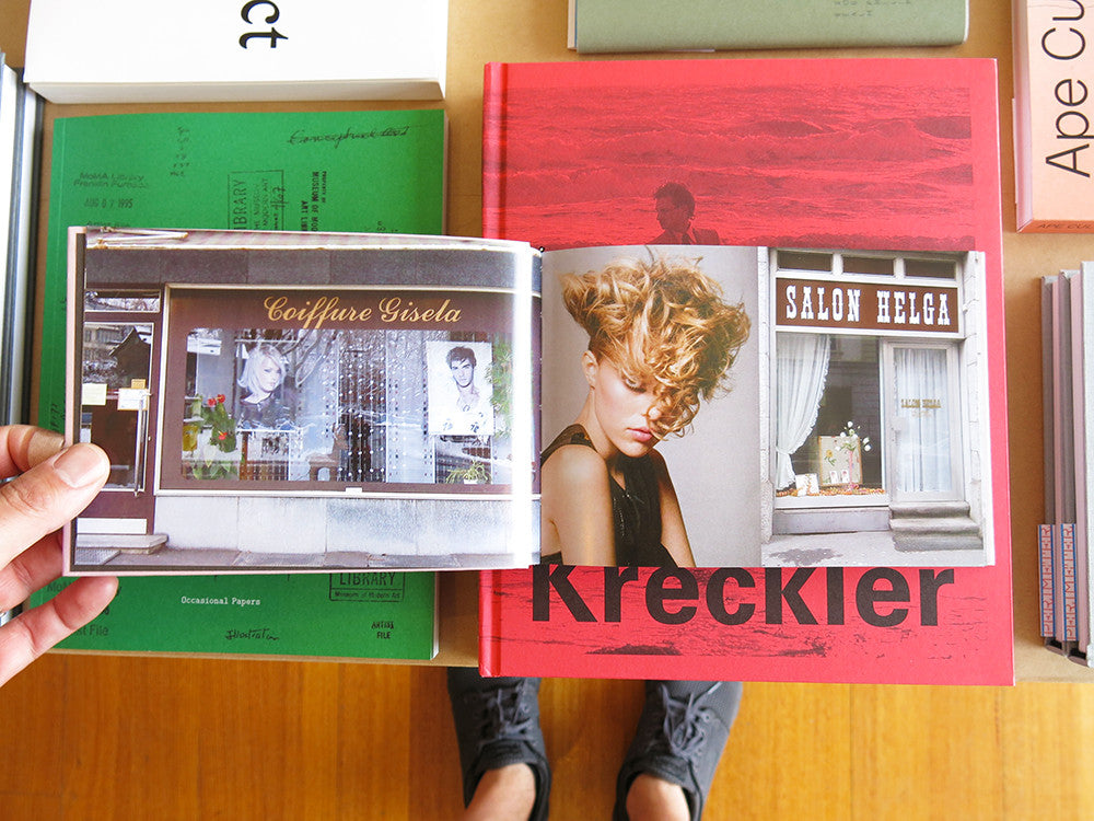 Hair Affair, Haircore, Jennyf'hair: hair salons are curious little worlds. Their names angle for attention, as do the window displays touting their particular aesthetic. The names and window displays of the Swiss salons showcased in Salon Moderne are veritable gems: there’s a window adorned with Corinthian columns, fishing nets and shells, for example, another decorated with model cars and a signed soccer ball, still others featuring carnival masks, colourful life preservers during the summer season, or photos of Miss Switzerlands past and present. But what could Swiss hairdressers possibly be thinking when they place a nibbled-at pine cone and a wooden hedgehog (half of whose spines are broken) on a styrofoam pedestal in the window? Well, it appears that hair salon window-dressing is an art unto itself, at once fascinating, perplexing and risible, often more or less divorced from the core business itself, and the sheer diversity of its one-off productions is unrivalled in any other line of retail business. That such a decorative culture should survive into the age of professional branding is but one more reason to devote a whole book to this bizarre phenomenon.