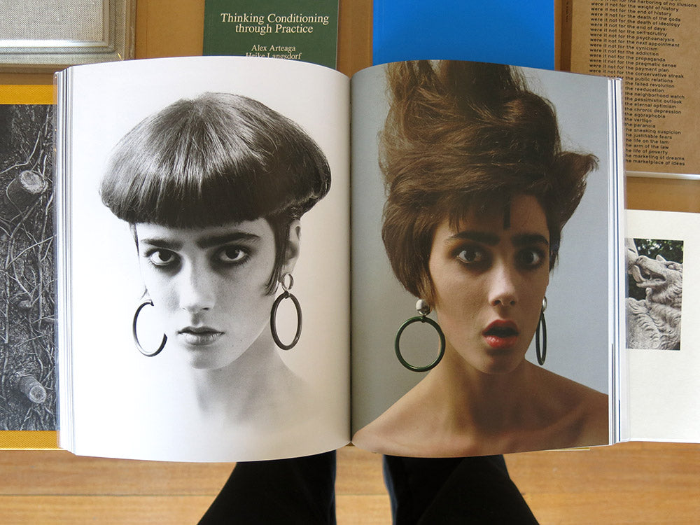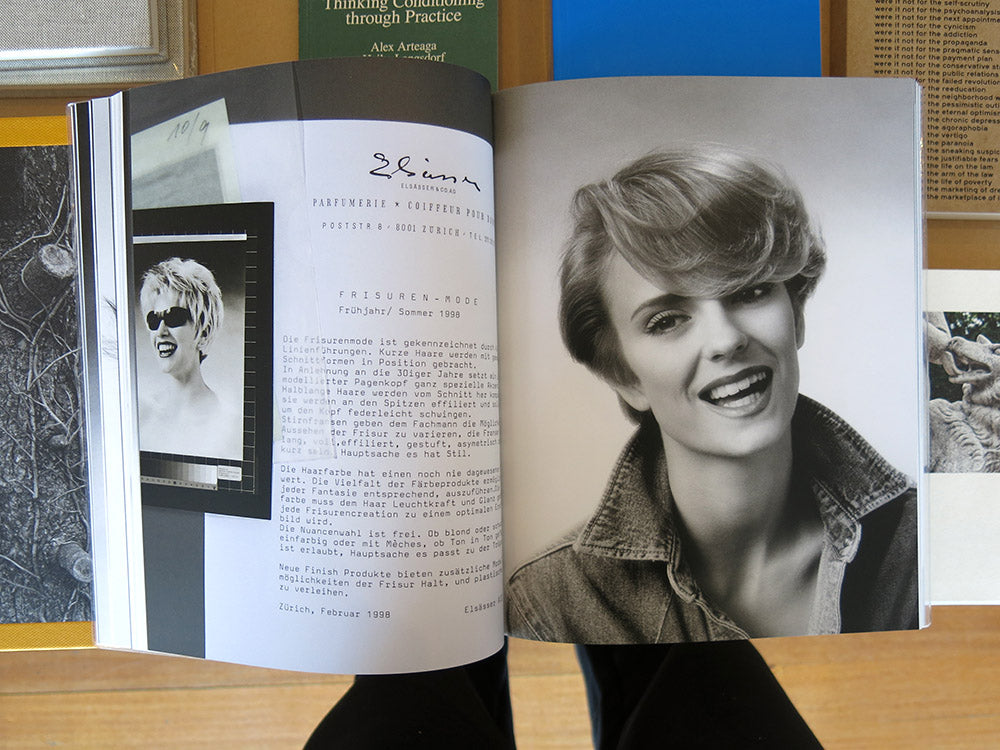 A person’s hair may be likened to the top of a mountain. But while mountaintops are often shrouded from our eyes by clouds around them, a person’s top is almost always visible—especially in latitudes that have given up the daily use of bonnets, hats and headscarves. Hence the understandably heavy pressure on people’s heads—to get the hair just right. Over the course of several decades, photographer Peter Gaechter shot a wide array of hairdos for Zürich hairdresser Elsässer Pour Dames, tracking the changes in—and revivals of —hairstyles in late 20th-century Switzerland. The present publication brings together a selection of his photographs from the catalogues on display at these upmarket salons, showing the latest hairstyle trends from the 1970s to the 1990s. These sculpturesque cuts and coiffures, which were to be reproduced à l’identique on the customers’ heads, were also telltale signs of the times. Whether a punk or 'Cold War Kids' cut, a 'five-finger' blow-dry, feathery 'Charlie’s Angels' wings or 'Old Hollywood' coiffure – the multifarious hairstyles of local beauties, 'It Girls' and actresses featured in this book reflect the 'why not?' whateverism of liberal consumer culture as well as concrete changes in society, e.g. in the sudden apparition of a clunky cell phone included in the picture frame as a pixie cut accessory.