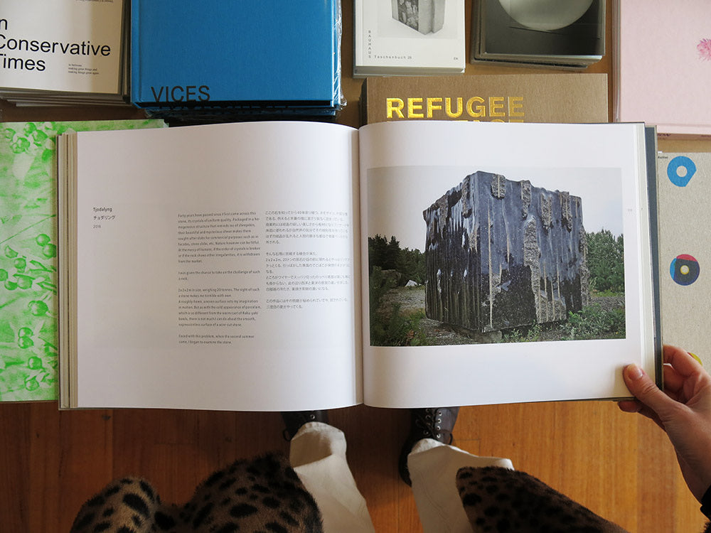 'Makoto Fujiwara is a Japanese sculptor who has worked for most of his life in Europe, far from the land of his origin, a small temple deep in the Japanese mountains. This book has evolved over the past four years, a document of his work as a stonemason and a very personal account of his unceasing playful curiosity and authentic tenacity in seeking to understand the world; following the vocation of his given name, – Makoto, ‘truthfully’ –, his engagement with a seemingly most impenetrable material: stone. This collection of stories, streams of observations, happenings, and insights, scrawled by the artist on large sheets of paper, draws us into complicity as we become witness to countless iterations – chiselling and polishing – that progress over extended intervals of time; the preparatory work of scouting, recognising, heaving, and moving; the aftermath of landscaping and setting in place; the many social interactions along the way as he invites colleagues to collaborate, and shares the labours of friends. The world that unfolds inspires appreciation of the unconditional and non-arbitrary in us who regard the ‘un-do’ as an always available option. After Makoto’s passing, we are left to finish this book in good faith, sadly missing his final seal of approval.' – Andreas Schneider