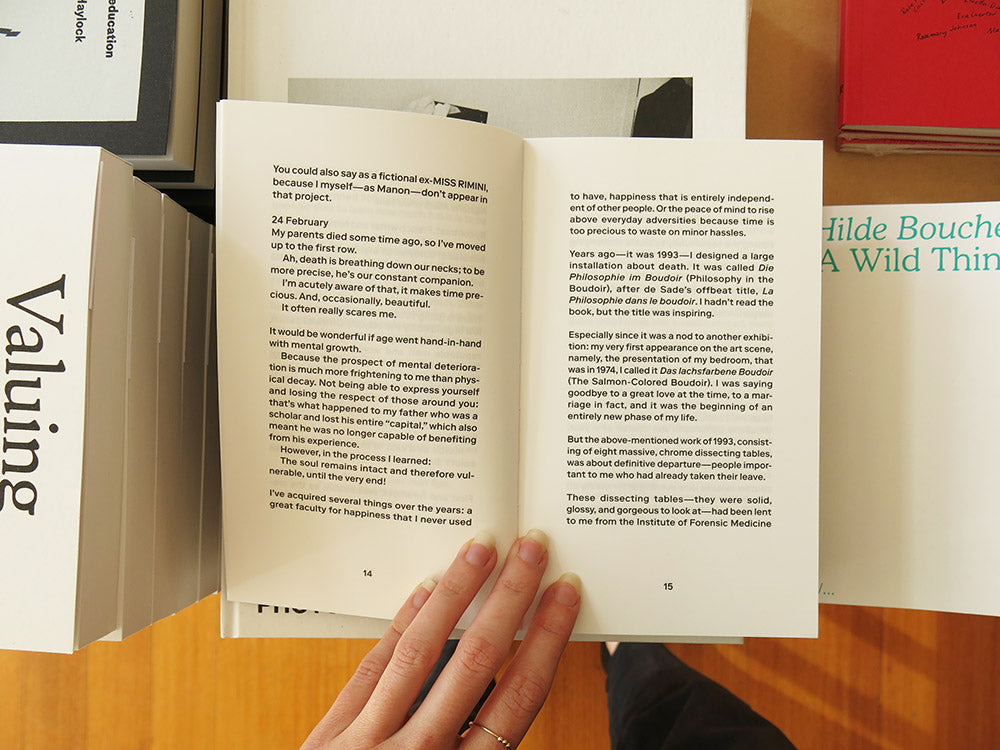 But the Swiss artist’s 'notes' for the planned documentary in 2005, diary-like entries 'about the passage of time, and about the passage of my times,' as she puts it, remained, and are published here for the first time. In light of the multitude of details they provide, it seems a bit of an understatement to call them 'notes'. Feathers actually takes the shape of a diary, and turns out to be a multi-layered narrative providing a succinct and yet feather-light look back on Manon's life, art, men and day-to-day concerns.
