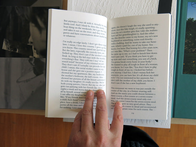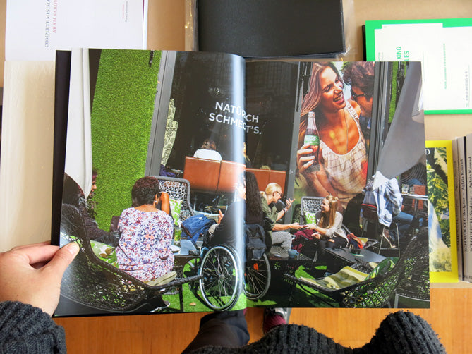 For three years Rico Scagliola and Michael Meier have been taking candid photographs of people from all walks of life and of every age in public and semi-public urban spaces: on streets and city squares, in cafés and bars, train stations and airports, stores and shopping centres. In the tradition of subjective street photography, they explore everyday rituals and self-presentation strategies, observing how the boundaries between public and private spheres are increasingly blurred by the new media. The photographs reveal how people of a Western stamp, by and large emancipated from overarching ideologies and procrustean social norms, strive to display their unique identities, but there’s simply no getting away from all-engulfing mainstream culture. Spoken-word fragments beside the photos contain snatches of conversations overheard in the street or exchanges with friends as well as passages from monologues on Youtube channels. Their accounts of ordinary everyday experience immerse the reader in a (main)stream of consciousness. Published by Edition Patrick Frey (Zurich).