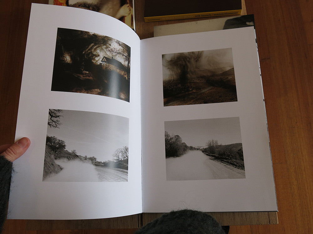 During a period of three years, Taiyo Onorato and Nico Krebs travelled several months through the United States, working “on the road” on the photo series The Great Unreal. The photographic work deals with reality and the fabrication of reality. The geography of America serves as both setting and fertile ground for the examination. Mysticism and demystification are important aspects in this process, as is working with a rich inventory of visual icons that can be continually deconstructed and manipulated. The working method of both photographers is based on interventions prescribed mostly by happenstance and change. Through repetition and associative placement, the sometimes crude, sometimes subtle interventions begin to link to one another, establishing an exciting transformation of reality that only hesitatingly reveals itself to the viewer. Together with book designers Megi Zumstein and Claudio Barandun, what emerged is an unmitigated picture book that makes a visual journey possible without any instructions. It comprises narrative image sequences that approximate the curiosity and restlessness of being on the move and, at the same time, depict associative connections with the American landscape. Third edition thanks to Edition Patrick Frey (Zurich).