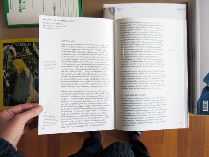 Appetite for the Magnificent is a photographic and essayistic exploration of the history and present-day world of the aquarium. David and Tania Willen focus their lenses on the pictorial, aesthetic dimension of present-day aquariums in Swiss zoos and Switzerland’s high-end aquarium scene: public and private labs in which “aquascapers” design animal-vegetable-mineral gardens of aqueous delights. These moving-picture aquascapes float between the poles of reality and virtuality, presence and absence, the animate and inanimate world. In the Willens’ photographs, all shot from the front, the fish seem suspended in mid-air, an effect that brings to the fore the virtual side of the aquarium: it is nothing short of a precursor to the television set. In his essay on the co-founder and popularizer of aquaristics Philip Henry Gosse (1810 –1888), Jörg Scheller retraces the evolution of the aquarium at the interface between art, science and religion. Published by Edition Patrick Frey (Zurich).