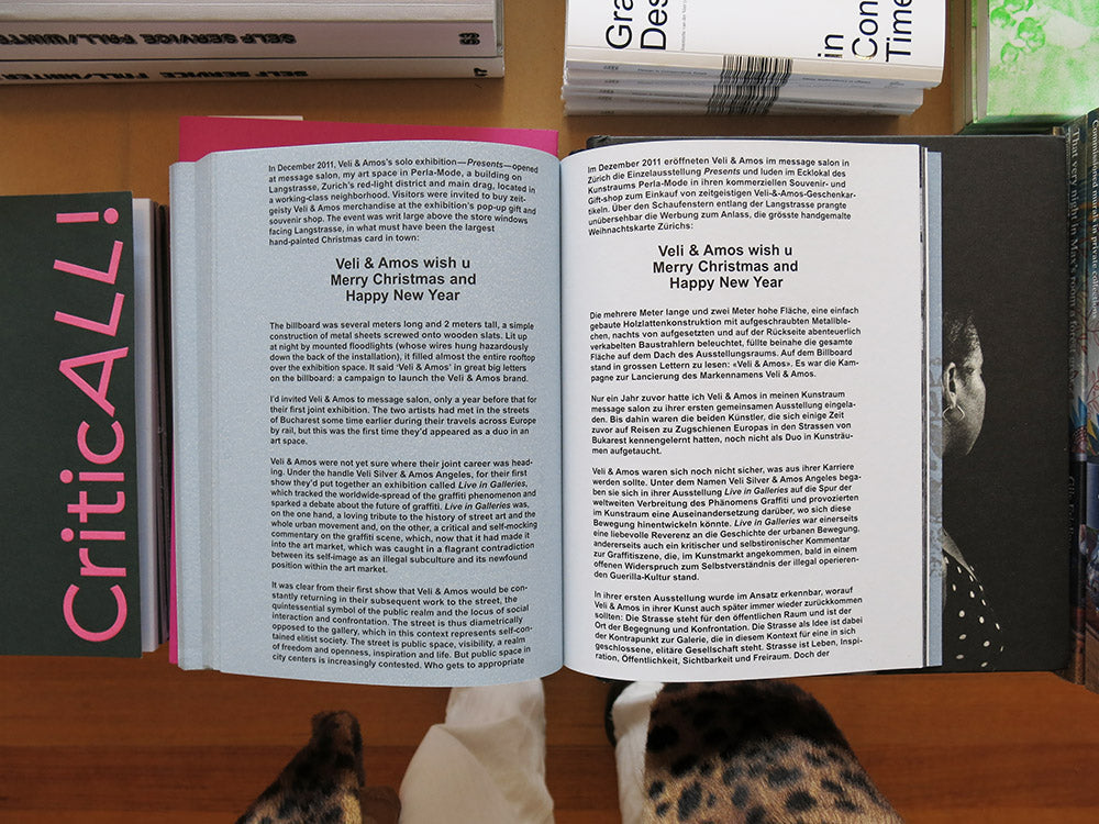 This is not a commercial addresses questions of economic models and strategies for artists to survive in today’s neoliberal market structure. As painters, we procured work for ourselves through this participatory sculpture. We don’t paint BMWs in Veli & Amos style: the brand is part and parcel of our sculpture, our postcards, our paintings and now our book. The point of the book is not only to document our billboard project, but also to keep it as up-to date as possible—with ads. Beginning November 11, 2019, buyers can design their own ad, upload an image file onto the website and put a full-page ad in our book. Buy a page and get a free copy. Prices start at €100 per page and increase by 2 percent with each ad sold. We publish your message: be part of our art, boost your business! Don't wait to lose money!' – Veli & Amos