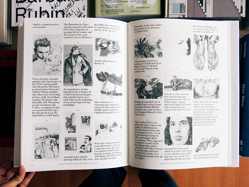 The Swiss photographer Walter Pfeiffer actually began his artistic career as a draftsman. His drawings are not widely known, and have rarely been seen. This volume is an overdue overview of his graphic work. In the early 1970s Pfeiffer produced large-scale hyper-realistic pencil drawings that served as points of departure and even working models for his photographs. This style gave rise to personal works as well as Pfeiffer’s legendary posters for the Zürich Filmpodium, magazine illustrations and commissioned portraits. His drawings are characterised by a cheerful, wakeful sensuality, sure lines and alternation between graphic reduction and a taste for rich ornamentation. This publication is not a conventional retrospective, but a stand-alone artist’s book in which to discover the vivacity of his drawings and a new Walter Pfeiffer.