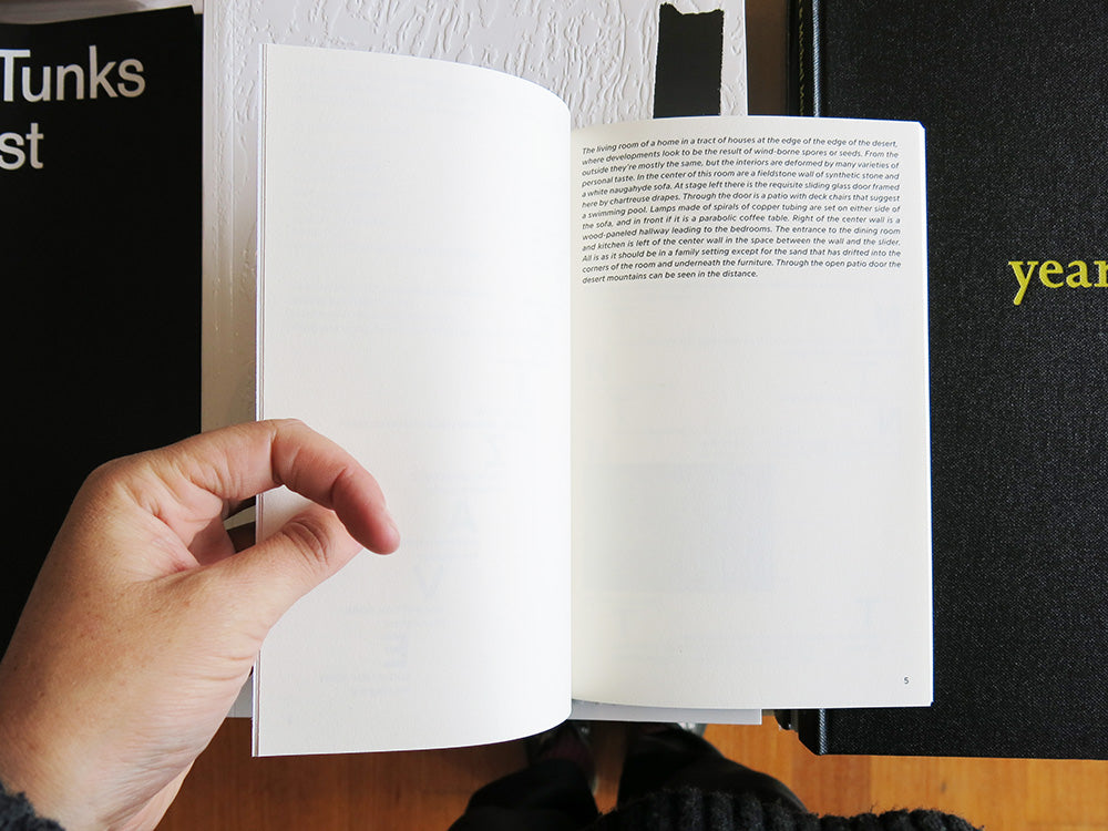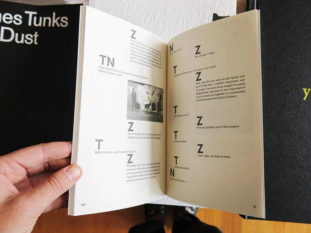 The demanding admission process makes them live in a security-free community in the desert together with other applicants. These two weeks in the desert result in anxiety and anti-social behaviour among the participants. Published in the series STUDIOLO / Edition Patrick Frey (Zurich).