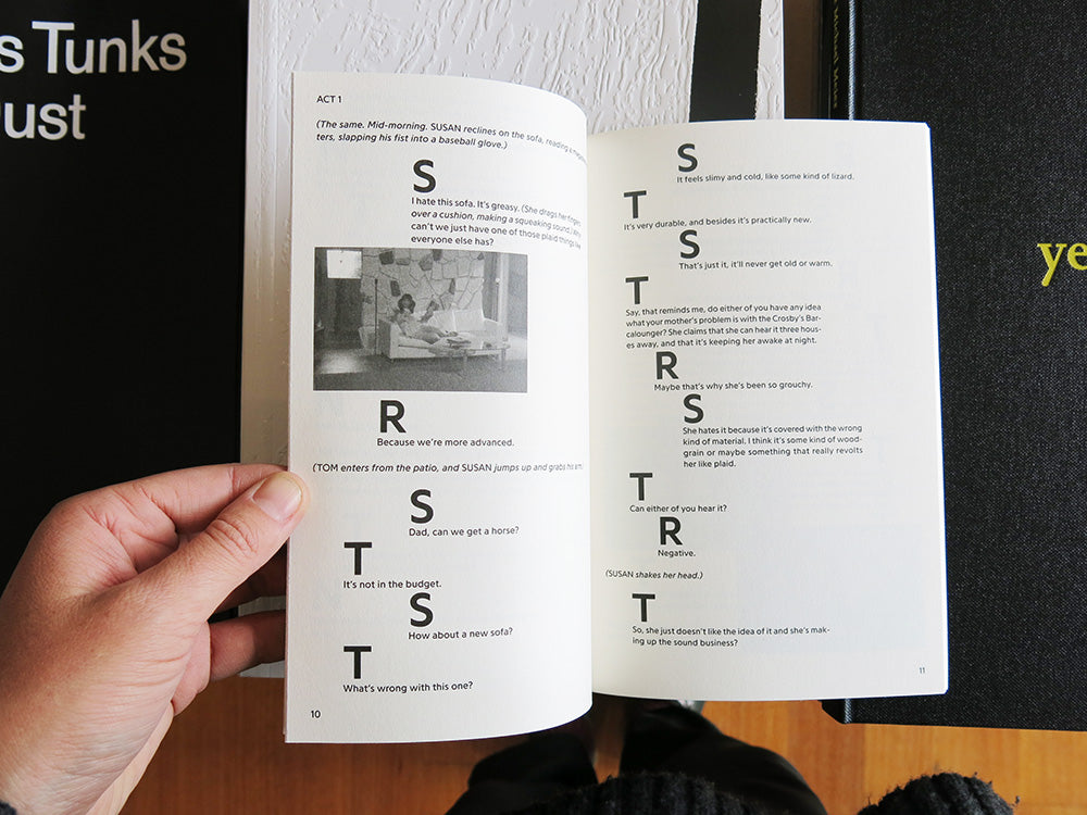 The Particles (of White Naugahyde) is the first publication of a play by William Leavitt (1941). Leavitt is one of the pioneers of conceptual art in Los Angeles, helping to establish the genre in the late 1960s and the 1970s. His works make use of narrative elements drawn from LA architecture and popular culture as well as from the movie and television industries. The artist works in various media, including sculpture, painting, drawing, photography and theatre. Framed as a sitcom setting, the narrative of The Particles (of White Naugahyde) tells the story of a family auditioning for a NASA program, which sends them to a newly planned space colony.