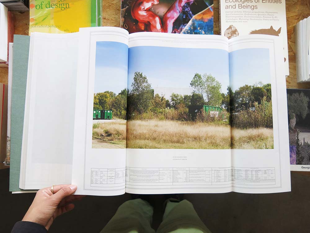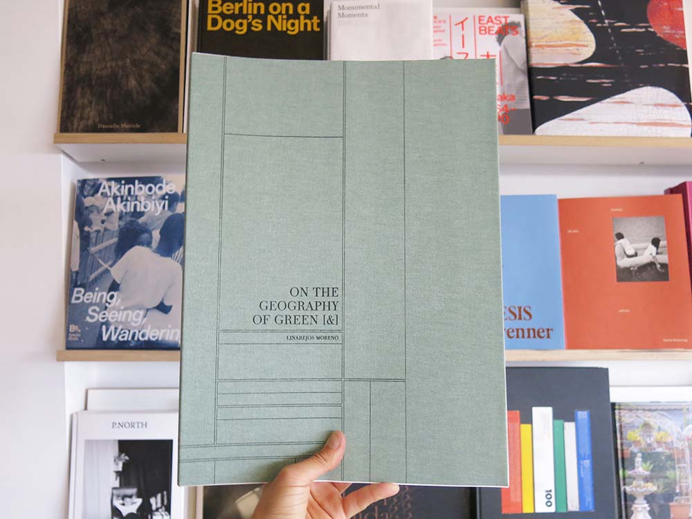 In the original series On the Geography of Green, carried out between 2016–2022, in abandoned drive-in theatres of Texas, Arkansas and Louisiana, Moreno explores landscape from a decolonized, gender-informed perspective. The book includes the first sketches on the original Humboldt plates that inspired the project, as well as 10 other plates, where the methodology is applied to other site-specific contexts and issues; On the Geography of Red (a study of Spanish museum collections from a gender perspective), On the Geography of the River and On the Geography of Chutculucene (studies on the production of knowledge and capital in the landscape from a post humanist perspective).