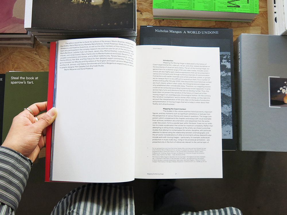 The publication Mapping the Moving Image: Media, Agents, and Sites in the Czech Context is dedicated to a critical assessment of the practice of the moving image in the Czech art world from the 1970s to the present day. Its central theme is the critical analysis of the relevant planes of negotiation for an autonomous position for this practice. The separate commissioned essays by authors representing the discourses of both art history and film studies, as well as the perspective of archivists and curators, are arranged into a coherent volume that makes up for the currently fragmentary historical image of this practice.