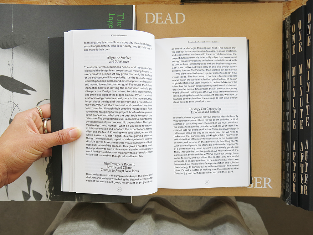Part personal memoir and part professional manual by Matt Owens, A Visible Distance, Craft, Creativity, and the Business of Design is a reality check to challenges when building a practice in graphic design or branding. These lessons and learnings span the recent decades: from his roots in DIY, punk, and skateboarding in the later 80s, to the advent of the commercialisation of the internet in the late 1990s, building and growing a creative agency, to the present disruption of artificial intelligence, automation, and distributed hybrid teams.