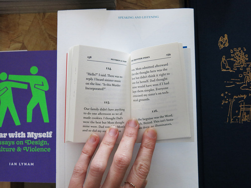Guiding readers across the desiccated landscape of twenty-first century America in The Frontier Index is the cult duo of Raymond Pettibon and Mike Topp, two of contemporary art and literature's wildest provocateurs in pen and ink. As they note, The Frontier Index is loosely based on Kenko’s 1332 Essays In Idleness, comprising a preface and 243 passages that can span a single line or a few pages. Essays In Idleness is similar to Sei Shōnagon’s The Pillow Book, from around 1000 AD, in that both books employ zuihitsu, a Japanese literary form that literally means 'follow the brush', where the creation of order depends on disorder. Zuihitsu demands as its starting point juxtapositions, fragments, contradictions, random materials and pieces of varying lengths. Oh yes, and wrestlers.