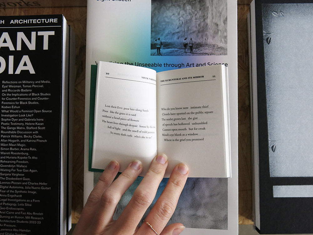 Vivek Narayanan’s The Kuruntokai and Its Mirror is a fractalized translation and reinterpretation of a classical work in the Tamil Sangam canon, an anthology of 401 short poems composed between 100 CE and 300 CE. As Narayanan writes, the poems 'explore in excruciating detail the relationship between the interior and the exterior, the personal and the public' to reflect on the fracture of poetry itself.
