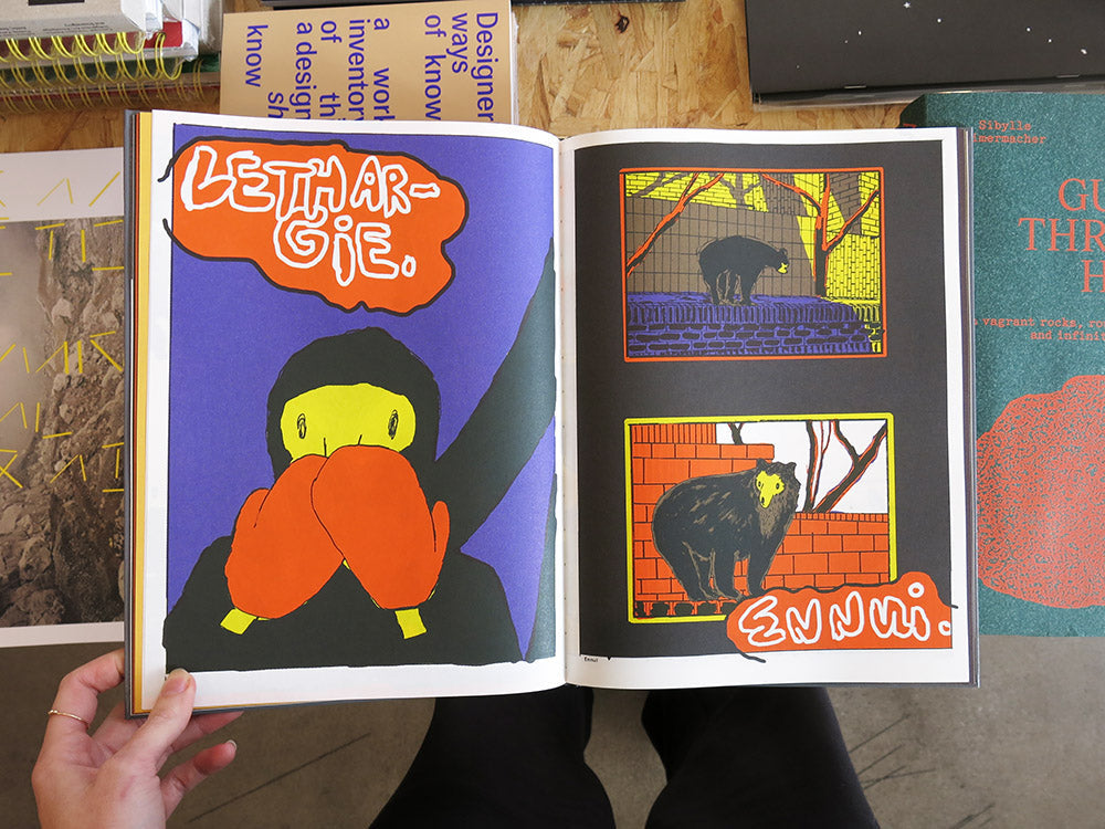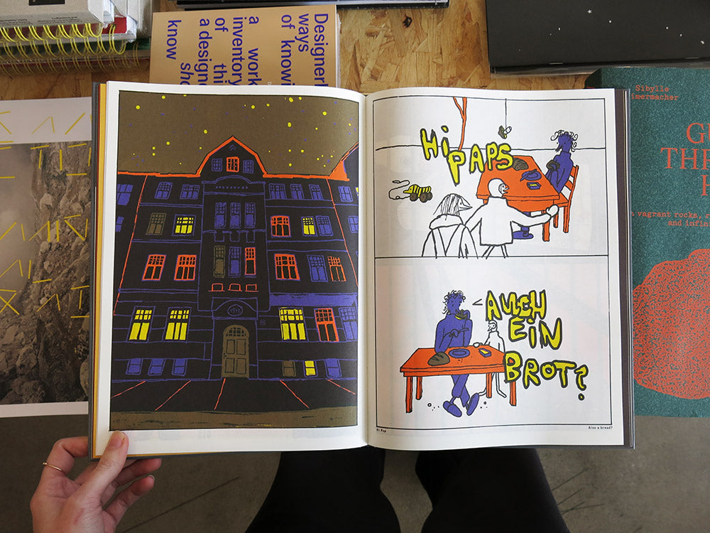 The catalogue for the exhibition Chez Schnabel at the Museum der Bildenden Künste Leipzig is being published in conjunction with the 2021 LVZ Art Prize award. This is the first publication by artist Anna Haifisch to give an insight into her approach to making comics. The catalogue brings together sketches, references, haikus, notes, and the new short story 1992—a making-of account composed of wobbly animals, the artist entity, and autobiographical material.