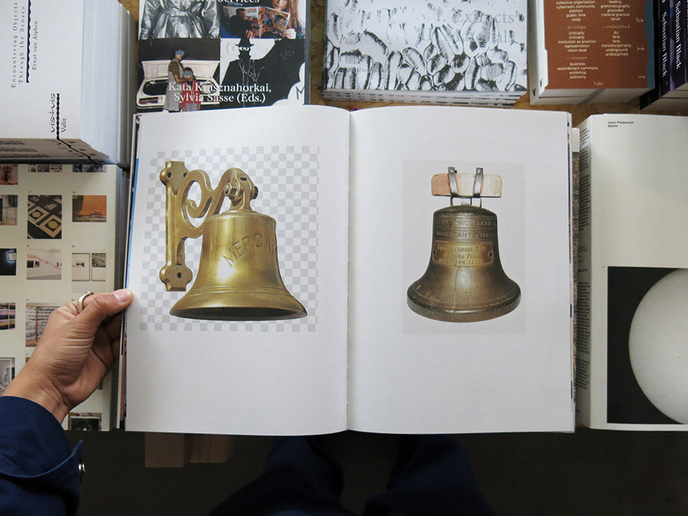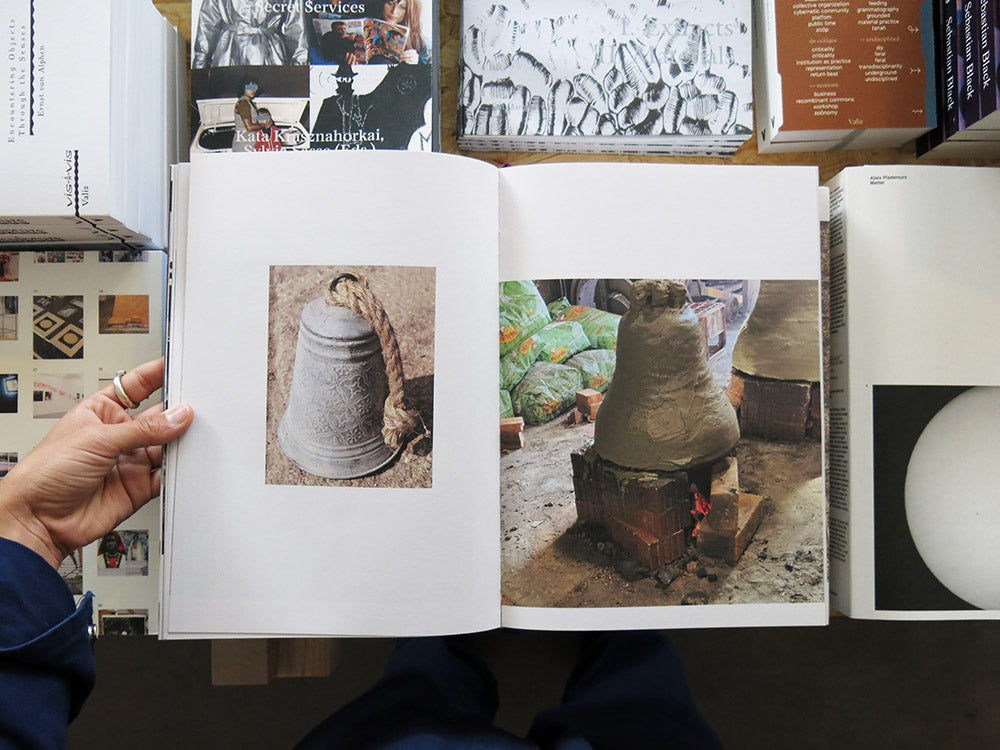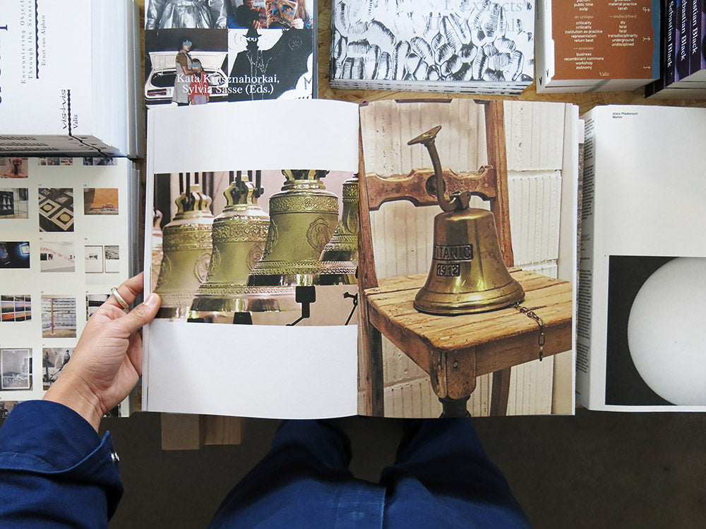 They lifted me into the sun again and packed my skull with cinnamon is a new artist's book by Jason Dodge. The book, composed entirely of images of bells, relates to a work in the Magic Megève collection in which bells tuned to 440 hz were mounted inside of every wall of the chalet. This is his first publication with Archivorum × M and Kodoji Press.