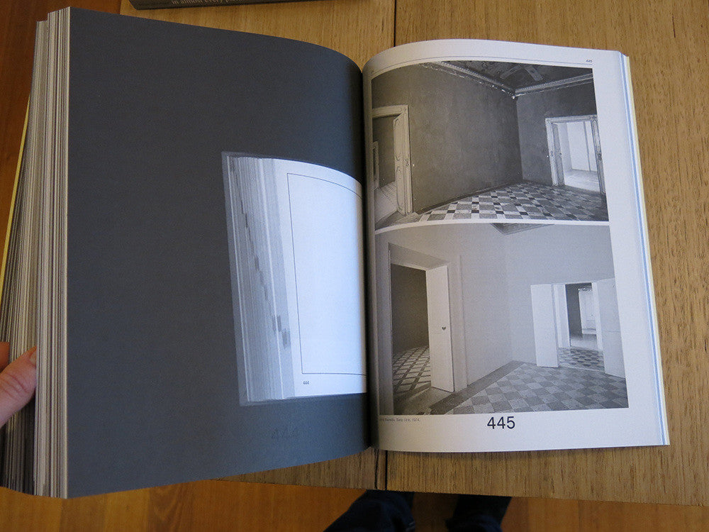 Veronika Spierenburg’s In Order of Pages presents a compendium of the artist’s many hours of research and reading at the Sitterwerk Library. The Sitterwerk Art Library is part of a collection of enterprises including a foundry, material archive, studio and photography printer located in a narrow valley outside the city of St. Gallen. The library originated with the bequest of Daniel Rohner, a passionate collector of books, and has since grown. Today the library operates a very particular system: each book is fitted with a radio frequency identification (RFID) tag and is digitally tracked; as a result it has no fixed location on the shelves, but can circulate and still be found. This system was created in light of Rohner’s interest in the associative connections generated by chance, random meetings of books in a library. The RFID system and the ensuing movement of books enables spontaneous creativity in the finding and sharing of volumes and information, as users can generate collections of books and the different constellations in which each volume has appeared can also be tracked. Since 2010, Spierenburg has been a regular visitor to the Sitterwerk Library; in this time she has created her own inventory of it. She moved through the 25,000 volumes, taking each she encountered in her hands and scanning more than 3000 pages that corresponded to her interests. This publication reproduces a selection of about 450 of these copies made by Spierenburg in collaboration with graphic designer Simone Koller. Each page retains the pagination from its original source. Published by Kodoji Press (Baden).