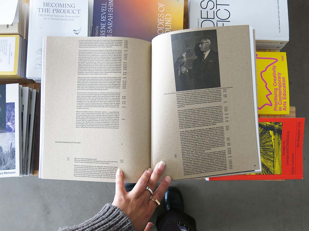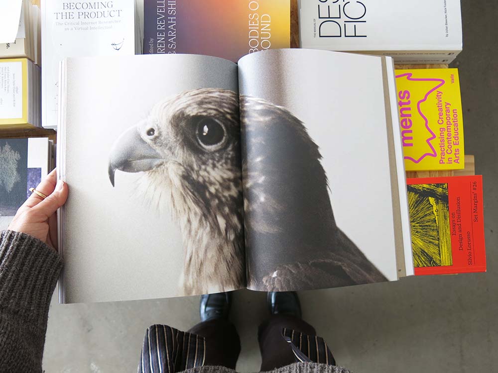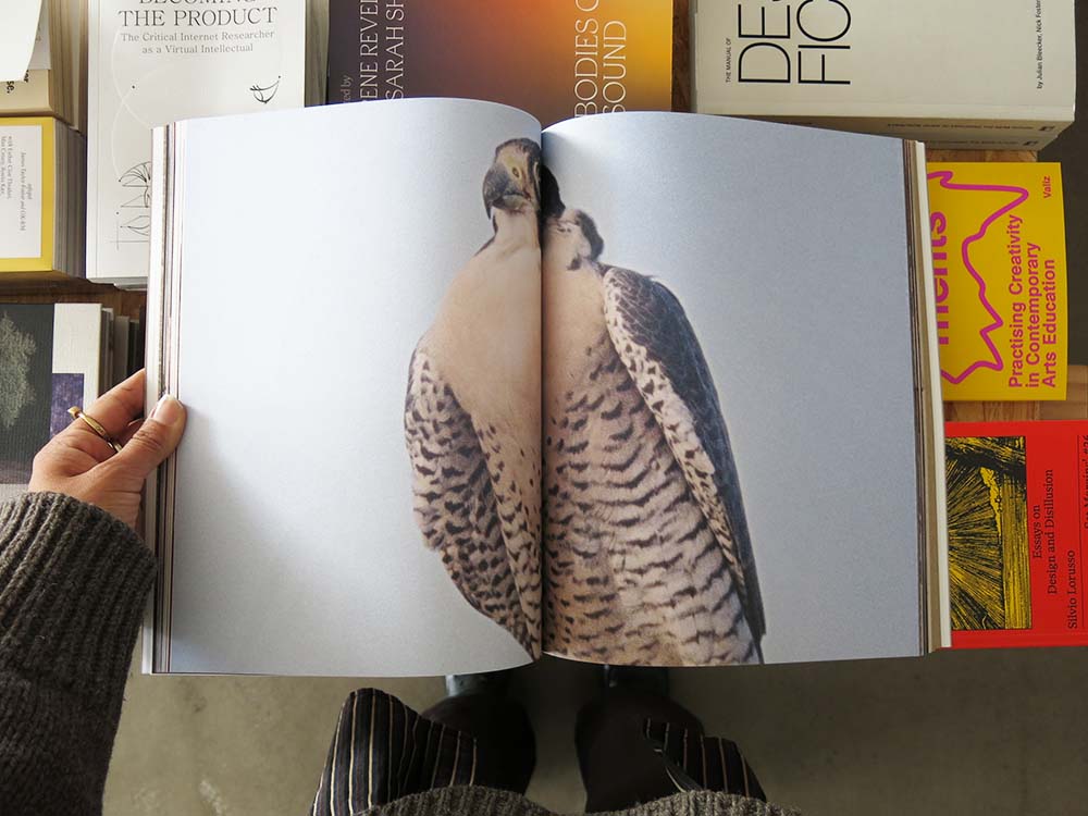 Elisa Caldana’s The Falcon of Karachi investigates stories of the laggar falcon, a species endemic to Pakistan, India, and Myanmar that is slowly disappearing in the wild. The artist (b. 1986, Pordenone, Italy; lives in the Hague, the Netherlands) elaborates counternarratives and counter-images that attempt to shift the perception of this bird of prey, considered a minor falcon, and draw attention to its right to life, regardless of its reputation or usefulness in the eyes of human beings.