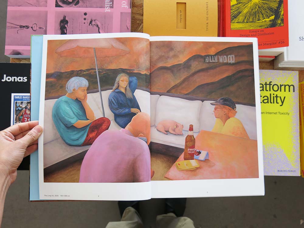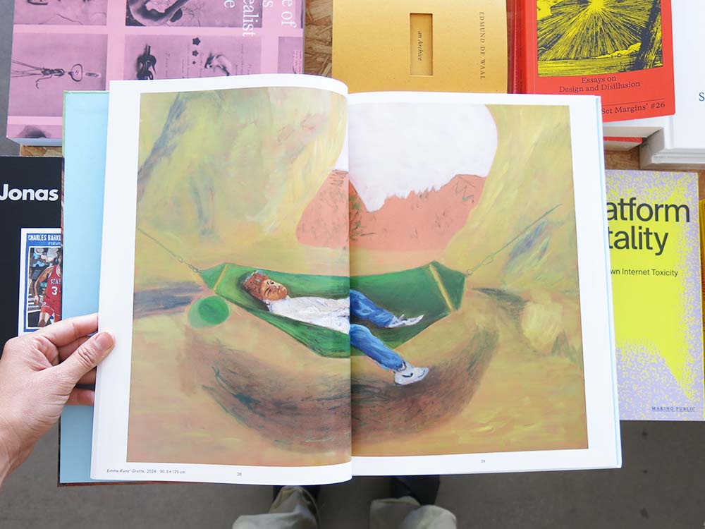The publication Noemi Pfister: Heart on Sleeve accompanies the exhibition of the same name at the Bündner Kunstmuseum Chur (September 6–November 23, 2025). In her paintings the artist combines motifs from art history as well as pop culture. She symbolically weaves themes such as youth, digitality, ecology, and the human form into multilayered narratives. Her dreamlike landscapes are inhabited by enigmatic figures that seem to belong to a parallel world. Their anatomies appear distorted – they lounge on skateboards, scroll on their phones, or immerse themselves in video games. The visual language at times echoes the compositions of Old Master paintings, yet their clothing, postures, and props reflect today’s youth culture. By intertwining the familiar with the uncanny, her works probe the kinds of communities we might inhabit in the future. The richly illustrated catalogue features texts by Raphael Gygax, Damian Jurt, and Valerie Keller.