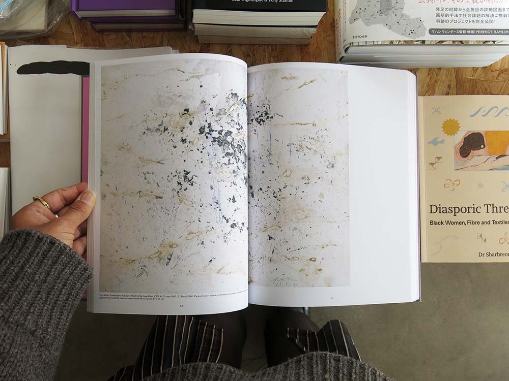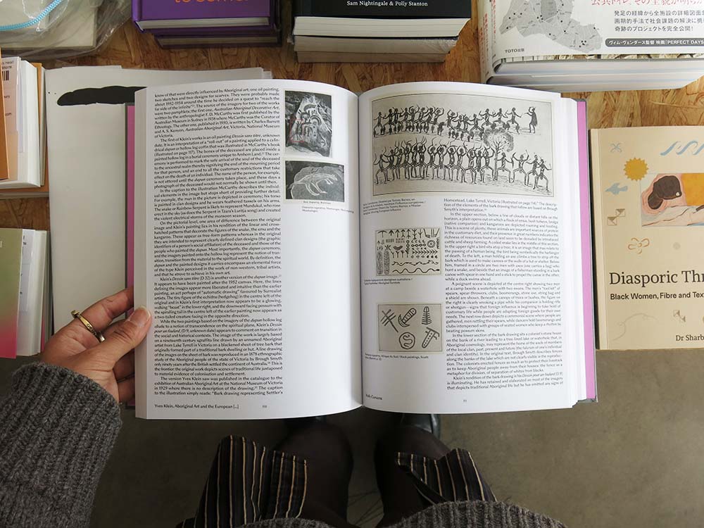 Published on the occasion of the homonymous exhibition held at the Opale Foundation (in Lens, Switzerland), the book Rêver dans le rêve des autres (Dreaming in the dream of others) presents the work of Yves Klein alongside with works by twelve Aboriginal artists (Angkaliya Curtis, Bardayal 'Lofty' Nadjamerrek, Bill Whiskey Tjapaltjarri, Danie Mellor, Dhambit Munungurr, Emily Kame Kngwarreye, Ignatia Djanghara, Paddy Bedford, Waigan Djanghara, Wattie Karruwara, Judy Watson, and Paji Honeychild Yankarr), showing how the link between the French artist and the world of the Australian Aboriginal people is anything but arbitrary. Klein was very interested in the non-Western: works from his youth have been discovered in his archives that were later identified as copies of Aboriginal motifs, and his writings confirm that he was familiar with the cave paintings of north-western Australia. In the ’50s, Aboriginal art, which was little known, was seen not as the expression of a different spirit, but rather as the survival of a vanished spirit, in short, that of the Neolithic: Yves Klein, like his parents, was fascinated by prehistory.