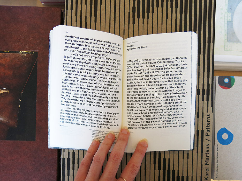 In the beginning was the word. Or rather, a rumour that put Max Eulitz on a flight to Kyiv in 2019. He was following the chatter about an ambitious new techno club: one without a name, yet full of promise. During a residency at the Goethe-Institut Kyiv, Eulitz witnessed the transformation of a massive, Soviet-era brewery into this no-name club—a centre of subculture intent on rivalling the best techno churches of the Western world. This landmark site, and the implications of its historical transmutation into such a space, became the focus of his research. Notes on 41 is a collection of essays illustrating the circumstances surrounding the creation of this nightclub. The book outlines structural challenges and the historical context, which imbue this site with such vitality, in Kyiv’s post-Maidan landscape. The issues raised consider the complexity of the sociopolitical situation in Ukraine.