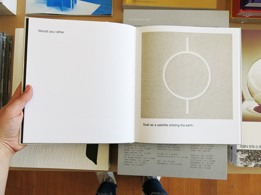 The children’s book Would you rather... by English author and illustrator John Burningham was first published in 1979. Christoph Elias Meier and Mara Züst took Burningham's incantation one step further and adapted the book’s meaning so that it asks about the essence of things (graffiti on a building, a furrow of a brow). Now these things, often forgotten about, but nevertheless populating our world, can be grasped by pondering wonderful and ample questions. This creates a game of foolish ventures, mental leaps and revocable choices, accompanied by fascinating illustrations made out of sand by Carolina Cerbaro.