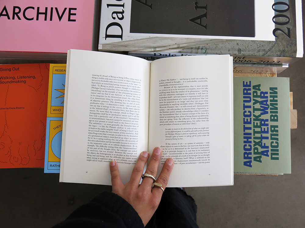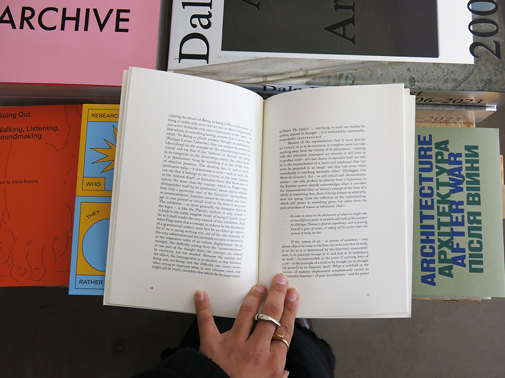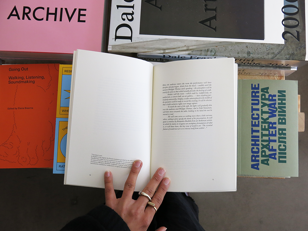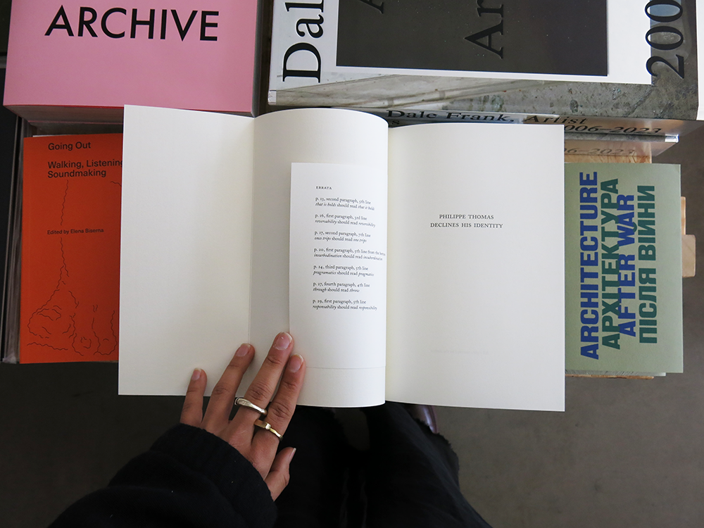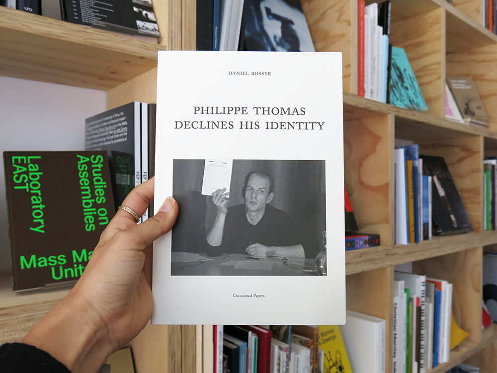 This is the first authorised English translation of Daniel Bosser's Philippe Thomas décline son identité, a book about modernism and modalities of display, first published by Galerie Claire Burrus, Paris, in 1987. The book was part of a performative talk given only twice by the French conceptual artist Philippe Thomas (1951–95). What audience members realised upon leaving the auditorium, and discovering the book, was that the talk they had just witnessed was minutely scripted – down to Thomas’ smallest gestures and pauses – in the book itself.