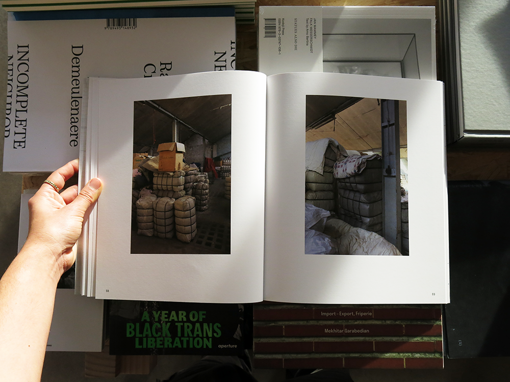 This book brings together a selection of photographs by artist Mekhitar Garabedian, documenting the warehouse of his late father’s company, Melantex, which exported second-hand clothing from Belgium to the Middle East, Asia, and Africa. The images inspired a one-year sculptural intervention by Garabedian, commissioned by the Antwerp Public Art Collection.