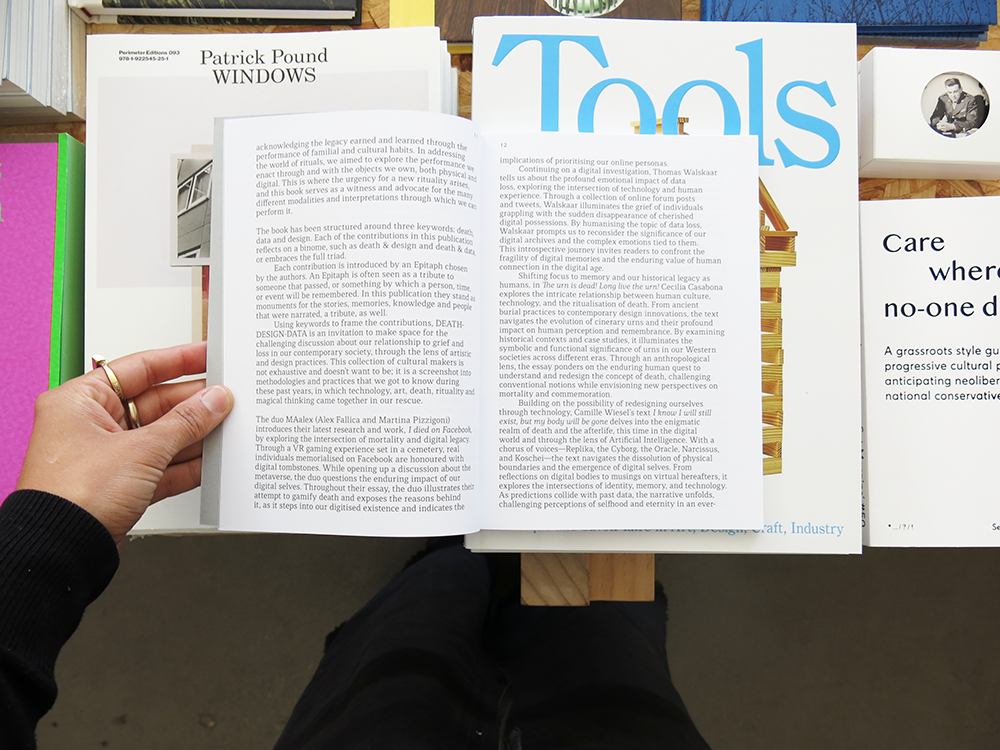 Death Design Data investigates the experience of death and grief in the digital era – one that is saturated with information yet finds itself devoid of rituality – and how art and design could play a role in reconciling humans with death. Ten contemporary artists and designers explore how different creative practices are able to produce new rituals in relation to death and loss and how this affects us as humans. The experiences, memories and invocations shared on these pages invite us to reconsider our mortality and the vessels that we use to navigate life and death.