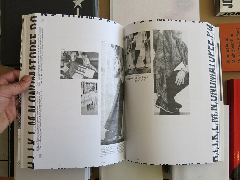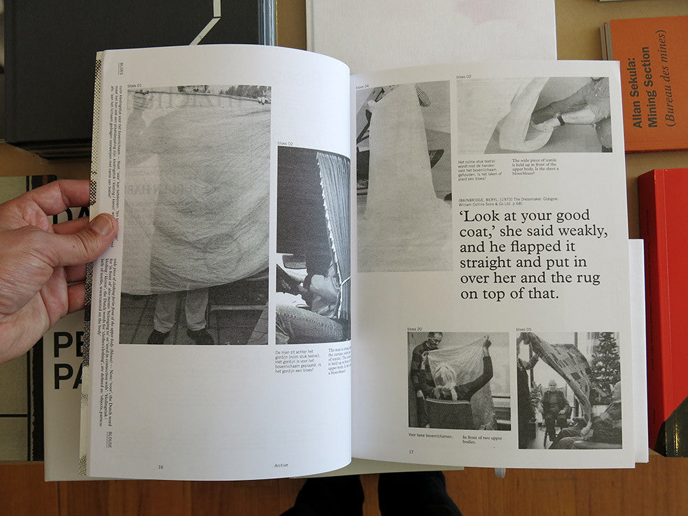 Dictionary Dressings is an ongoing research project by Femke de Vries that uses the nature of the dictionary definition as a "zero condition" for a piece of clothing to decode clothes and explore an alternative fashion vocabulary. Dictionary definitions are constructed to be factual and rational and as a consequence the entries for items of clothing show no reference to the ephemeral or immaterial character of fashion. They describe the characteristics of the items, their use and their relation to the body but never mention fashion or style. Take the Dutch definition of a glove for example: “Handschoen: bekleding van de hand” (literally translated into English as "Glove: covering of the hand"). Since a hand can be covered by putting it in a pocket, by bandaging it or by sitting on it, the definition allows a pair of trousers or a bandage to be interpreted as a glove – they cover the hand and so adhere to the definition. It is exactly this particular nature of the definitions of clothing that forms the foundation and very structure of Dictionary Dressings as a research project and an emerging design approach. Designed by Hans Gremmen (of Fw:Books) and featuring Barbara Brownie, BLESS, Conny Groenewegen, Elisa van Joolen, Joke Robaard, Ruby Hoette and Students from the HKU (University of the Arts Utrecht) 2015–16. Published by Onomatopee (Eindhoven).