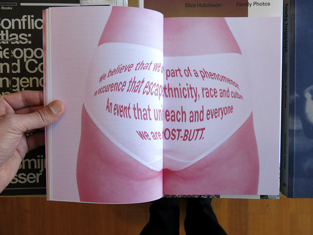 Post-Butt analyses the virality of images in our mediated society. It is a case study around the image of female butts, bootys, and behinds, and their influence in media, society and art. The butt is the protagonist of mass-mediated culture, it is the democratic sex organ par excellence. The phenomenon of bootyfication exists in many contexts, as varied as the exploitation of the body in colonialism to 90s hiphop culture. Post-Butt goes through different periods in time and place, to analyse the political meaning of the usage of the image of the female buttocks. It discusses the role of the booty in varied cultural expressions such as film, Internet art, music videos, dance and plastic surgery; and aims to reflect on how our society is conditioned by viral images that do not only exist in the digital context, but have deep consequences on our physical world as well.