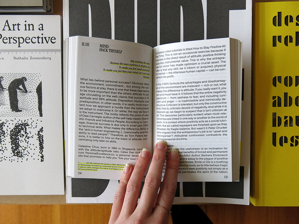 Entrepreneur or precarious worker? These are the terms of a cognitive dissonance that turns everyone’s life into a shaky project in perennial start-up phase. Silvio Lorusso guides us through the entreprecariat, a world where change is natural and healthy, whatever it may bring. A world populated by motivational posters, productivity tools, mobile offices and self-help techniques. A world in which a mix of entrepreneurial ideology and widespread precarity is what regulates professional social media, online marketplaces for self-employment and crowdfunding platforms for personal needs. The result? A life in permanent beta, with sometimes tragic implications.