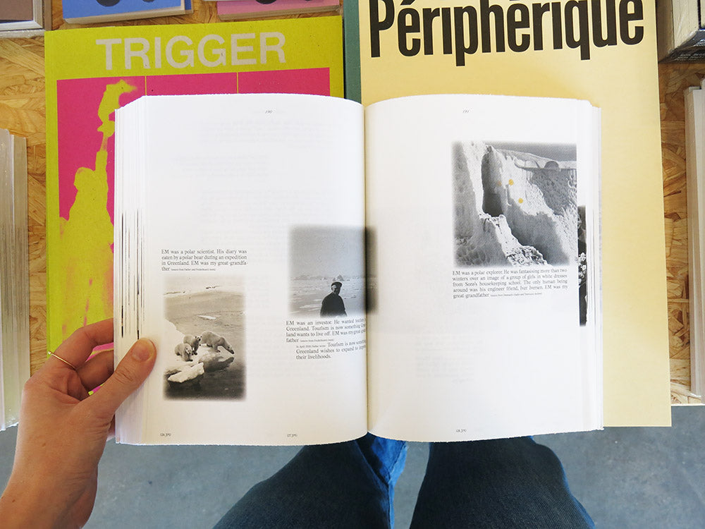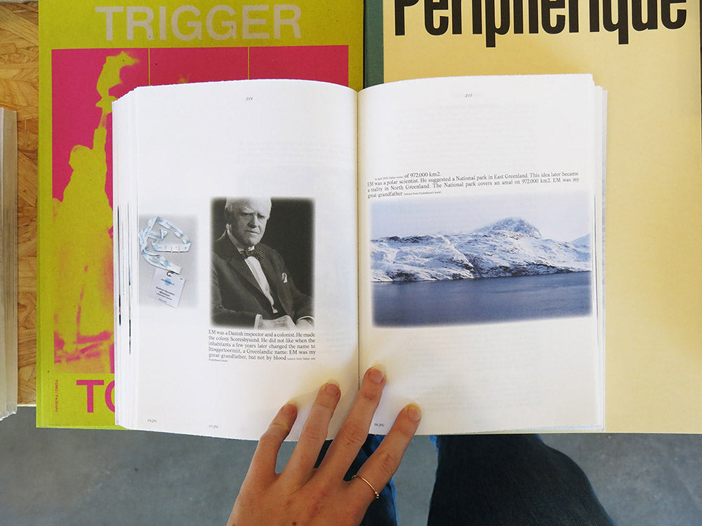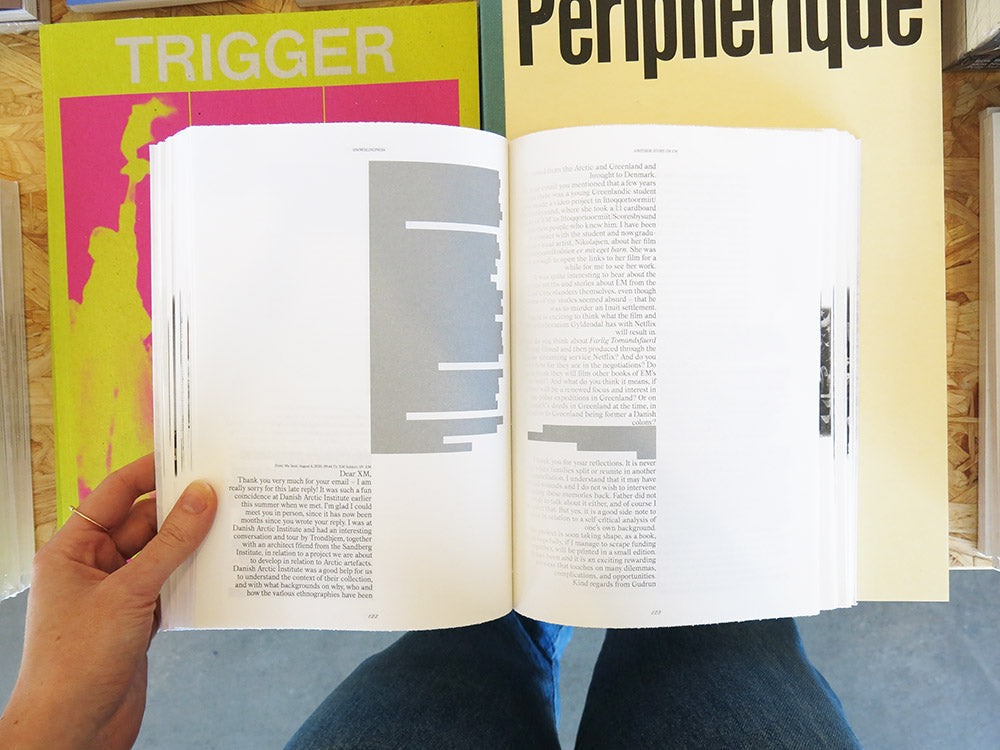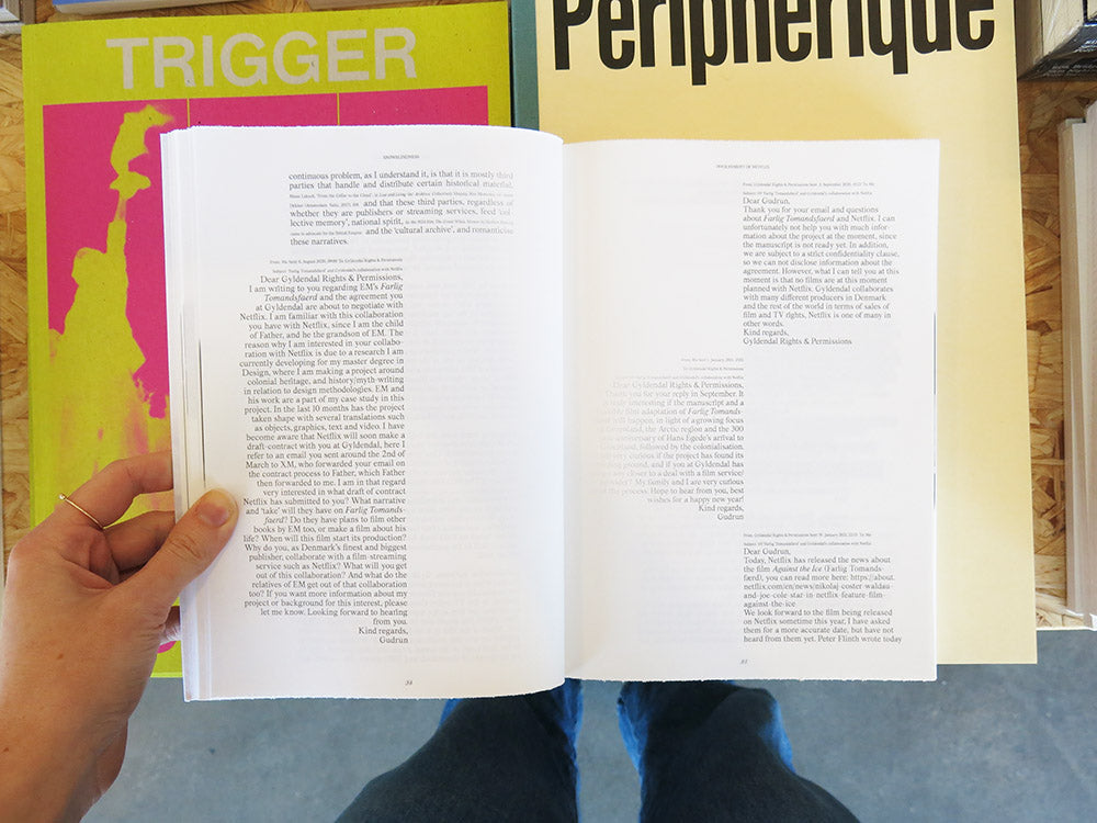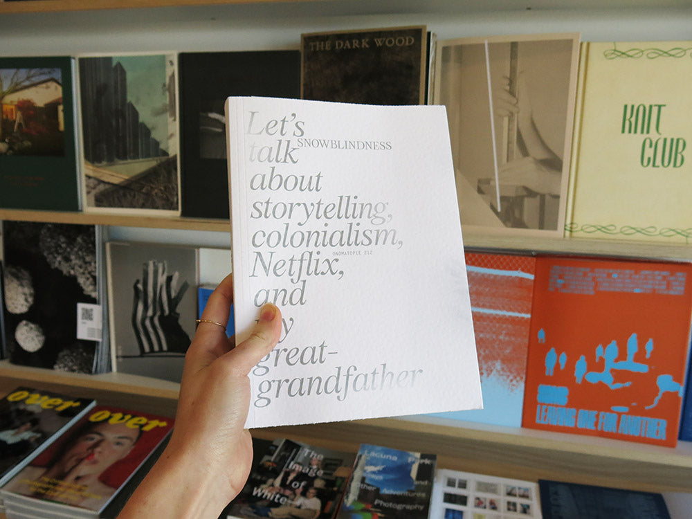 This book is designed and edited by Gudrun Havsteen-Mikkelsen, the great-granddaughter of this same explorer, in collaboration with designer Anna Bierler. Combining visual and textual contributions, archival material, dialogues, and controversies, Snowblindness: Let’s talk about storytelling, colonialism, Netflix and my great grandfather presents new grounds for engagement with the polar explorer’s stories, whether these are visually, orally, or textually transferred. The result is a generous and vulnerable reader, which weaves information from a multiplicity of sources, and places particular emphasis on collaboration, trust, and questioning.