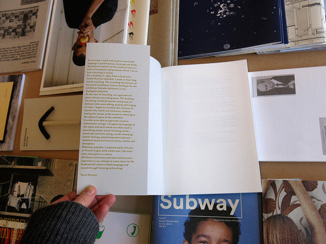 Dutch artist Toine Horvers has mysteriously translated the ambient sounds in the magnificent cavernous spaces of the Chartres Cathedral in France. Hovers often works with drawings as well as spoken and written language to study sound. In Chartres: one hour of sound in a Gothic cathedral, he has exclusively used text and language to transcribe the sounds of the cathedral. Each page in this pocket-sized book represents one minute of sound, resulting in a collective tonal poem that examines the nature between languages, sound, writing and listening. Thanks to Onomatopee (Eindhoven).