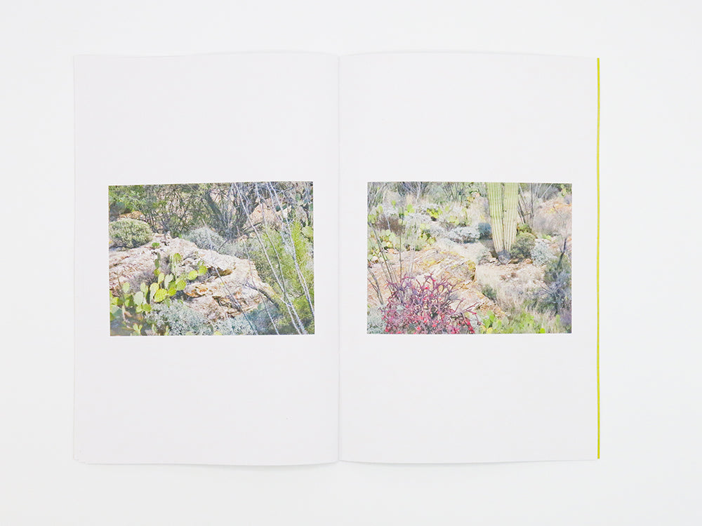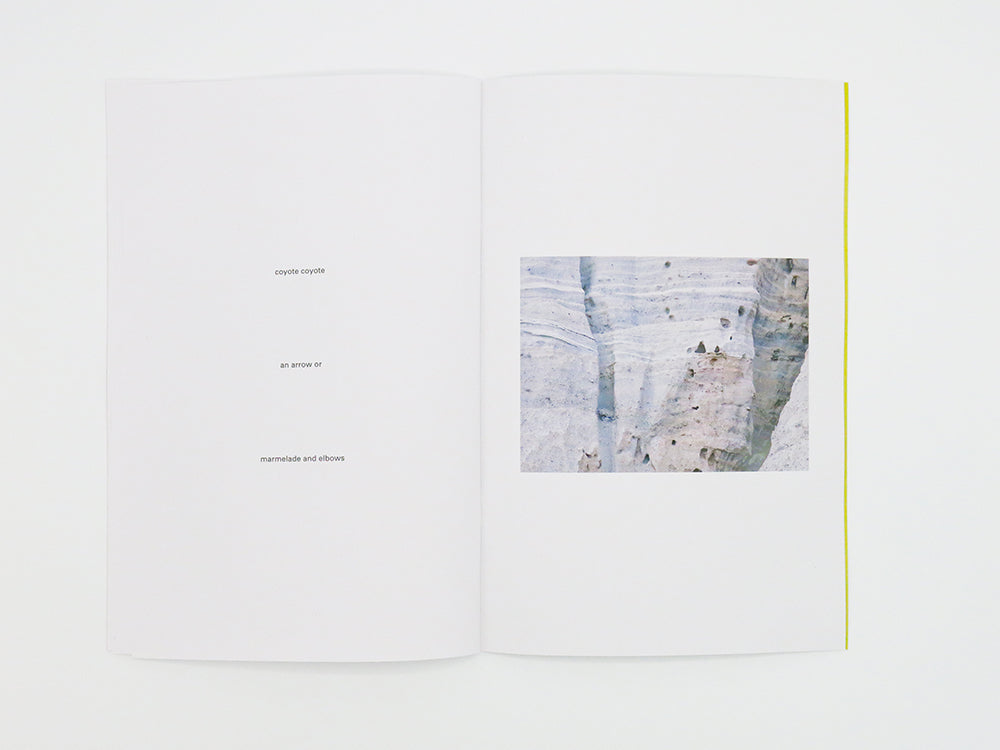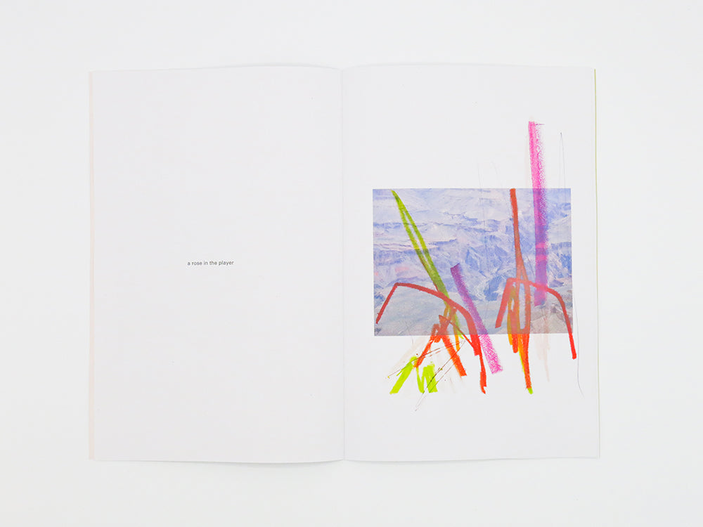 Ricocheting quietly between photographic landscapes, drawn abstractions and poetic recollections, Ambient Park – the latest artist book from Shelter Press cofounder Félicia Atkinson – assumes the form of a deferred performance. Serving as a kind of response to the French artist and experimental musician's recent sonic and visual output, the book comprises a series of film stills shot during her travels to New Mexico and Arizona, overlaid with a collection of at once crude and delicate drawings made in Australia. Co-published by Shelter Press and Perimeter Editions to coincide with Atkinson's Australian tour as part of the Liquid Architecture festival, Ambient Park echoes of Brian Eno's On Land or The Plateaux of Mirror (with Harold Budd) as astutely as it offers a nod to the untethered line work and colour of Clifford Still, Helen Frankenthaler, Amy Sillman or John Baldessari. Working to navigate a path across real lands, negative spaces and psychic topographies, Ambient Park manifests in the filmic trace, the words that spring to mind and the lines the body can draw.
