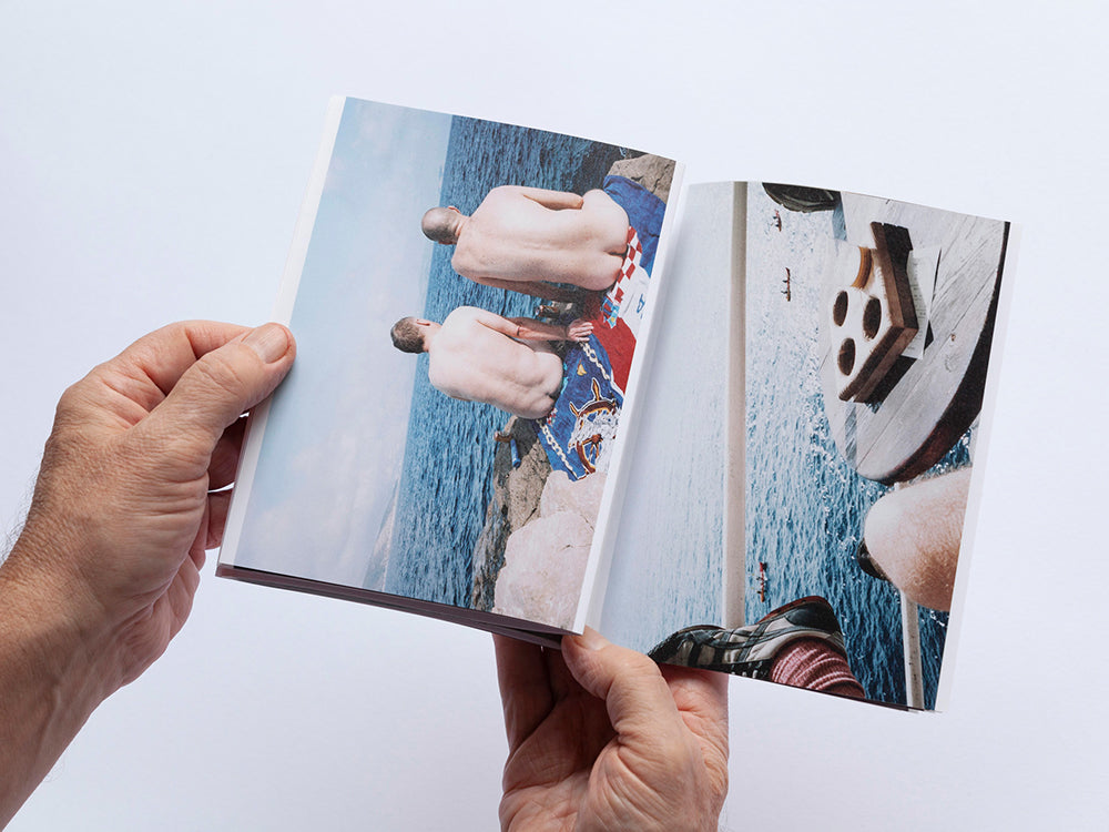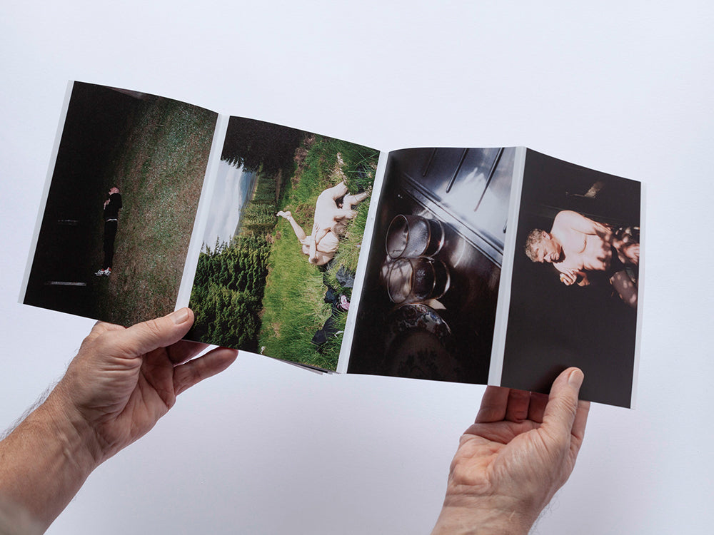 Positioning his 35mm camera on any available surface within the given environment or architecture – a mantelpiece, a log, a coffee table, or a rock at the beach – and setting a timer, Knight and his partner simply make themselves available for the camera to see what it sees. Laundry, breakfast, sex, day trips to the seaside, nights at the pub, moments of domestic calm; here, Knight eschews his diaristic gaze in the same way he loosens photography from notions of time or chronology. We’re left to consider both the spatial and the relational qualities of the sequence and the image.