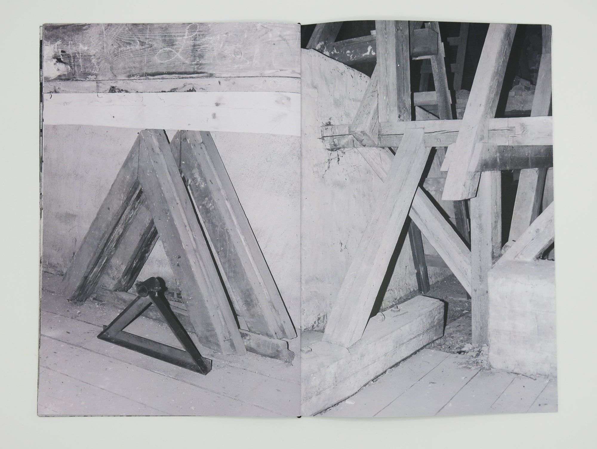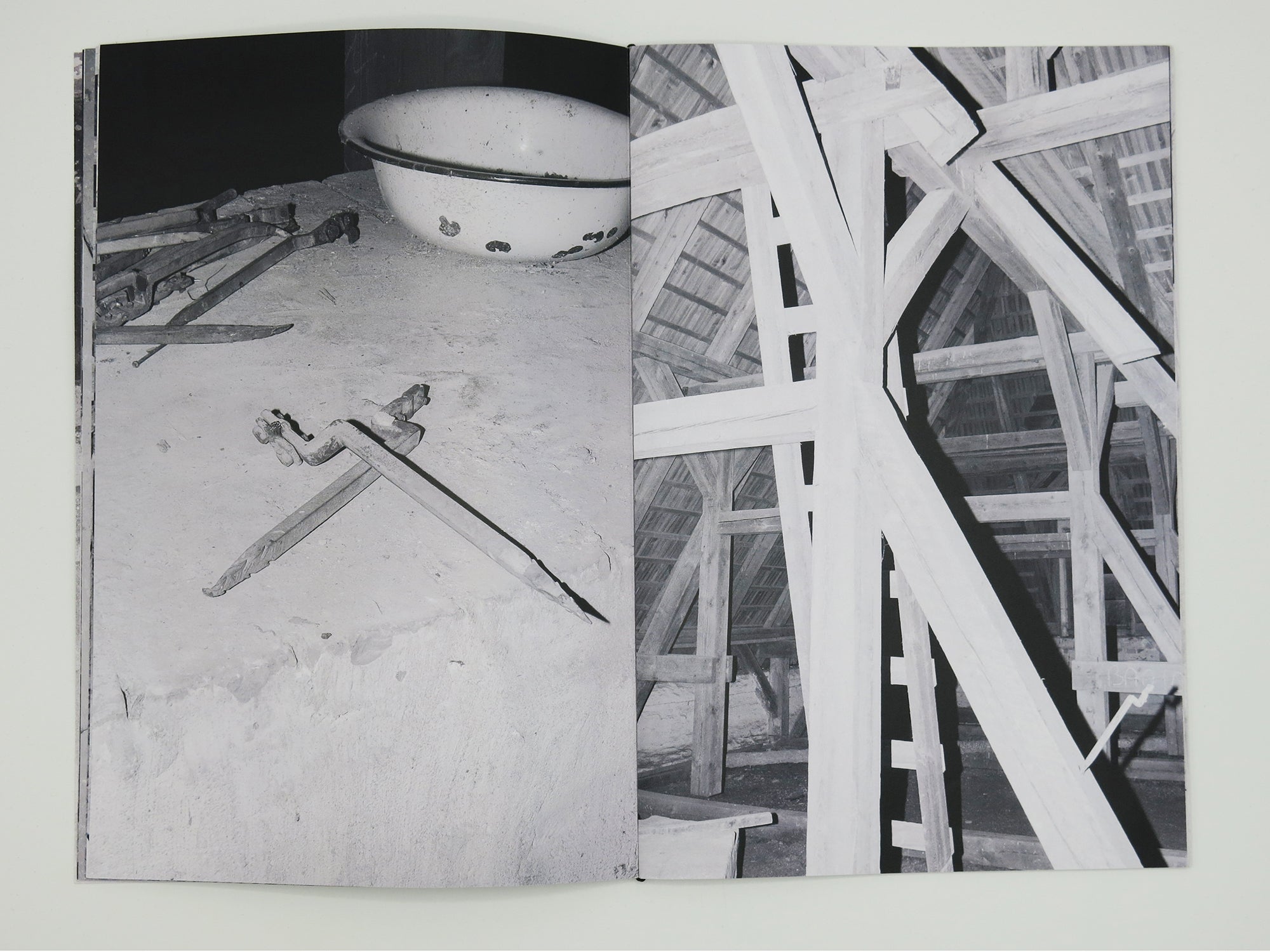 But amidst Walker’s dynamic, high-flash photographs – which were composed in the dark and reviewed after the fact – the cavernous interior of the building’s attic frees itself of historical shackles or signposts, morphing to assume the guise of an untethered, intensely psychological space. Here, endless geometrical forms stutter, shadow and repeat; Latvian graffiti, cigarette butts and dead critters litter surfaces; jagged objects and rusted tools gesture towards signs of violence; overlapping beams and joists form oblique visual puzzles. As such, Walker’s Pelči Manor feels like an obsessive thought or cerebration, looping and rearranging itself toward any and every possibility, searching for a solution that may never present itself.